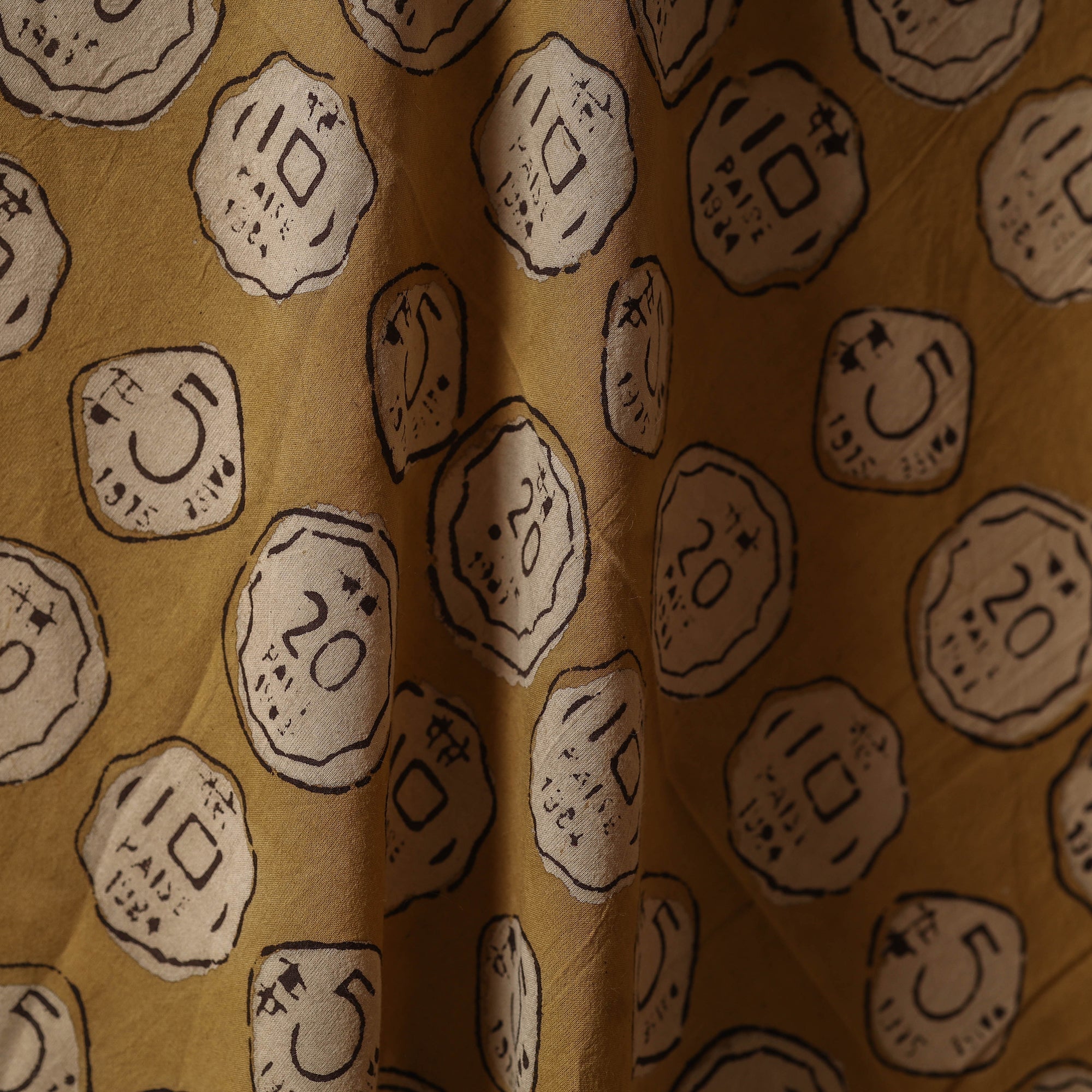 Yellow - Bindaas Block Print Cotton Natural Dyed Fabric - Sikka
