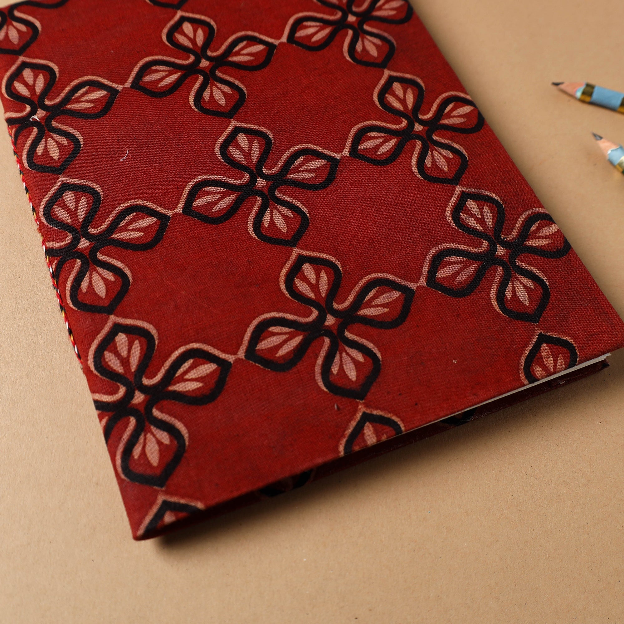 | Material | This hardbound notebook features a cover made from red bindaas block print cotton fabric. The eco-friendly pages are crafted from recycled cotton and natural fibers, providing a sustainable writing experience. Handmade by skilled artisans using traditional bookbinding techniques, this notebook is ideal for journaling, note-taking, or gifting.. |