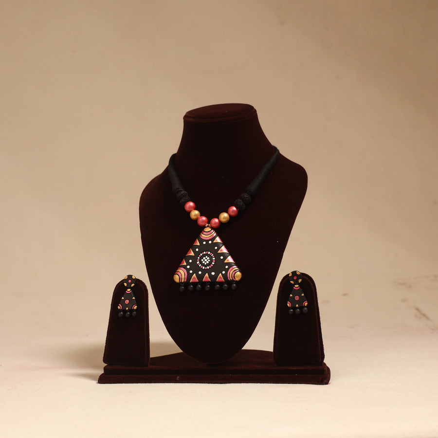 Red - Bishnupur Handpainted Fabart Clay Maa Durga Necklace Set 01