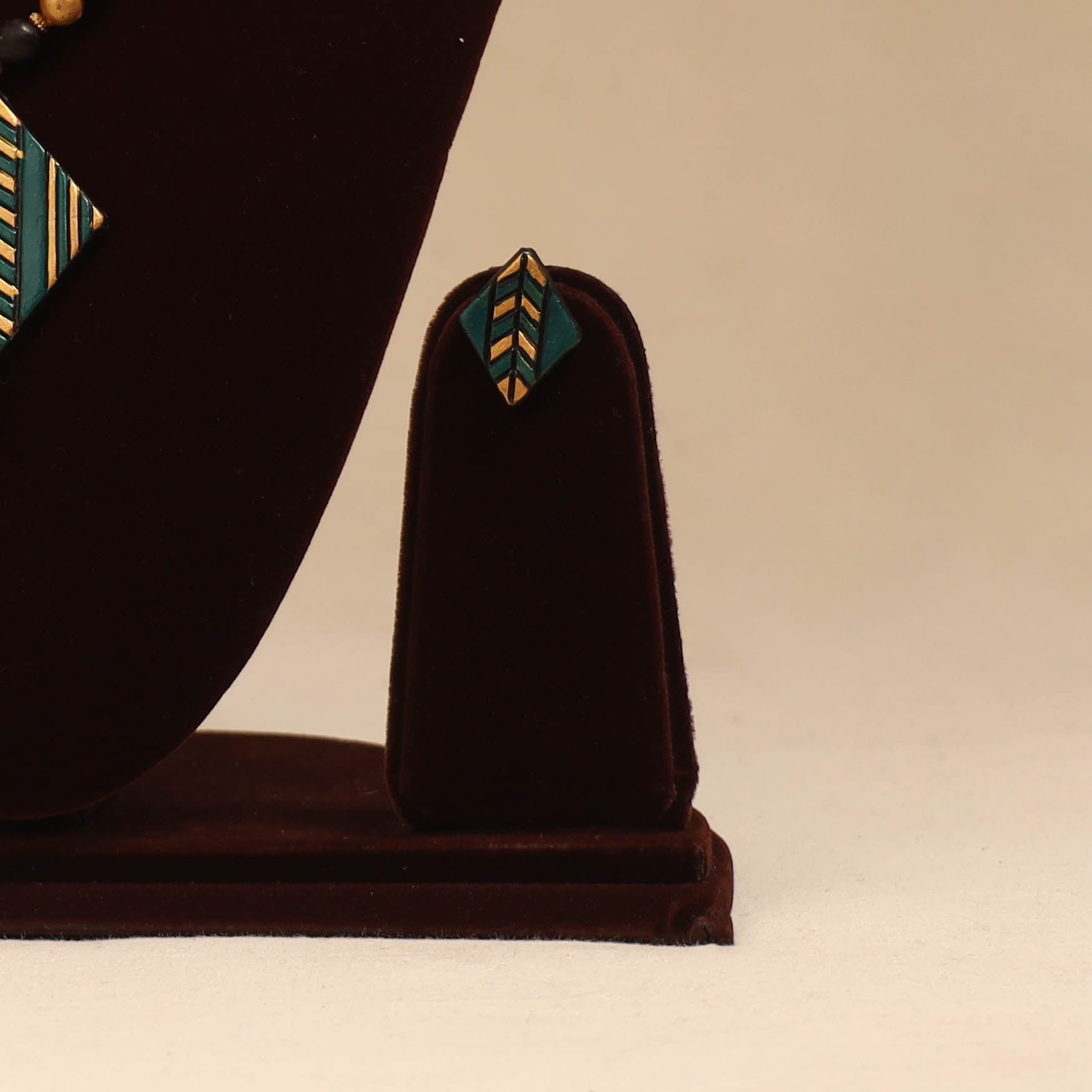 Green - Bishnupur Handpainted Fabart Clay Maa Durga Necklace Set 02