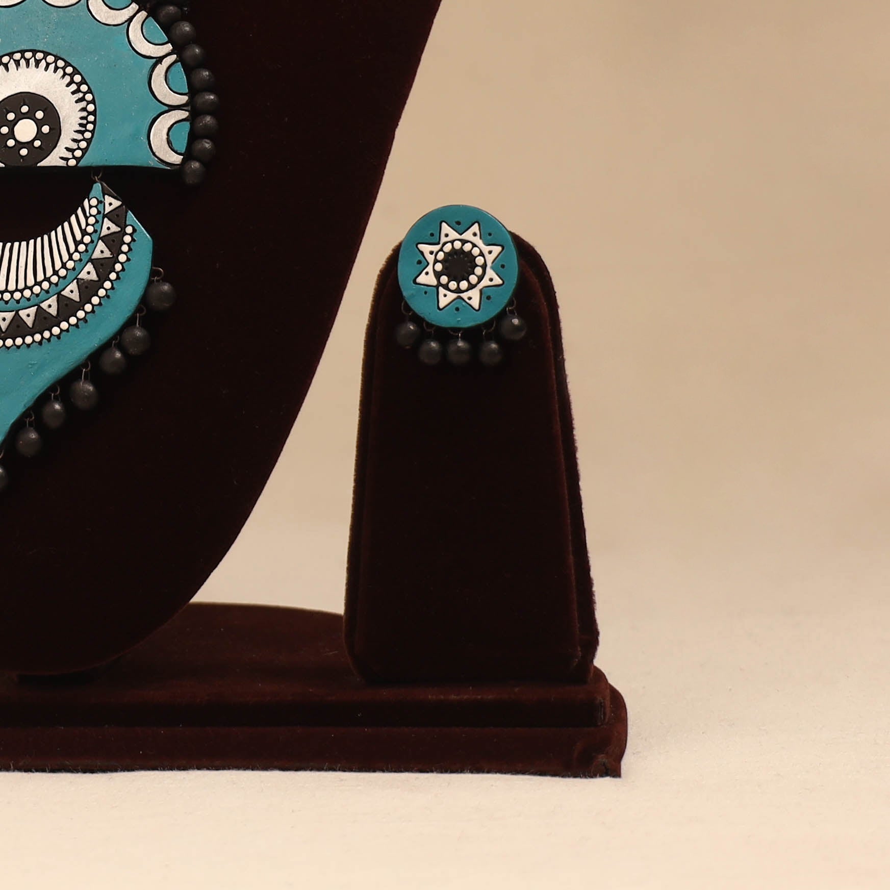 Hand-painted terracotta necklace set is a beautiful creation by skilled artisans from Bishnupur. Adorned with vibrant acrylic colours, each piece reflects the region’s rich artistic tradition. Complete with matching earrings, the set adds a graceful cultural touch to both everyday and festive outfits, celebrating the artistic heritage of Bishnupur.
