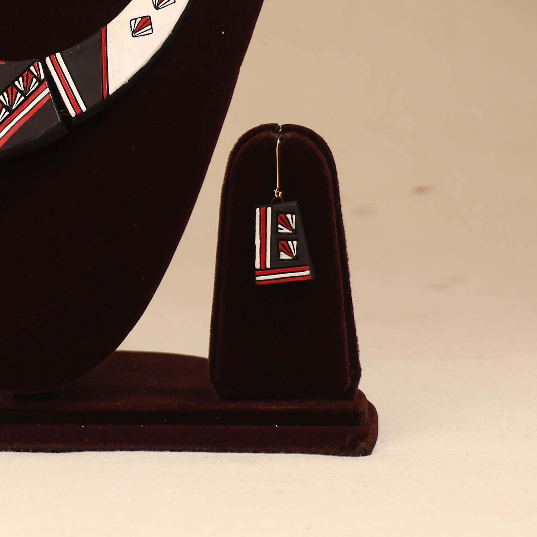 Red - Bishnupur Handpainted Fabart Clay Maa Durga Necklace Set 01