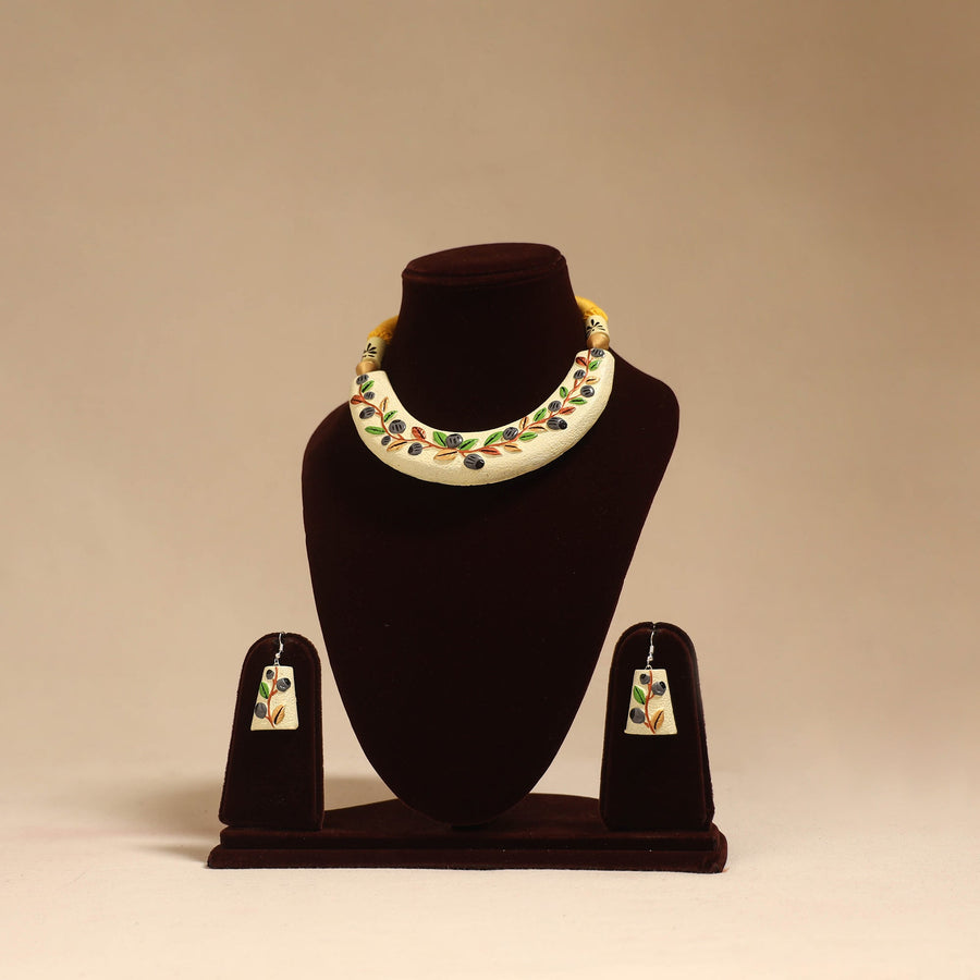 Green - Bishnupur Handpainted Fabart Clay Maa Durga Necklace Set 02