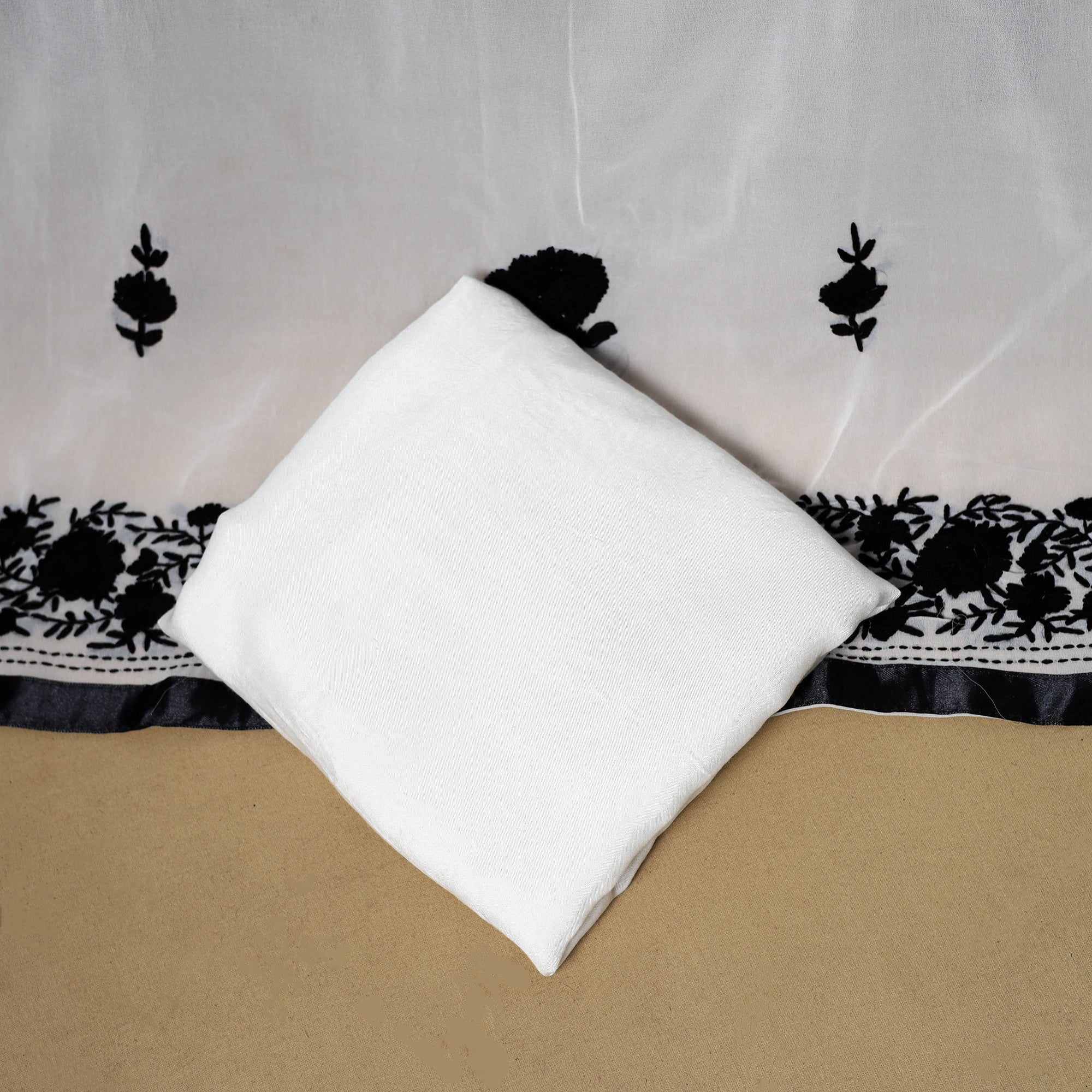 White - Ranihati Chapa Work Chanderi Silk Hand Embroidery Dupatta 131