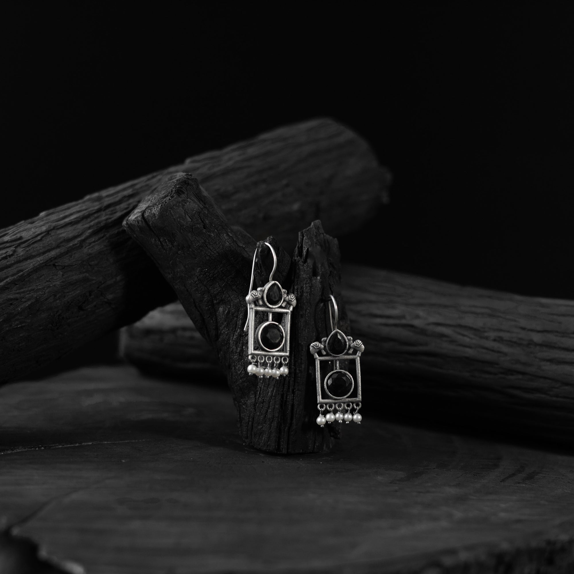 Oxidised handcrafted black earrings made with a blend of metal, stones, pearls, beads, and fine detailing. Perfect for festive occasions, weddings, casual outings, office wear, or vacations. Their elegant black and silver tones pair beautifully with everything from casual jeans and flowy dresses to chic office ensembles. A meaningful gift for mother, sister, wife, or girlfriend adding a beautiful touch of tradition to every moment.