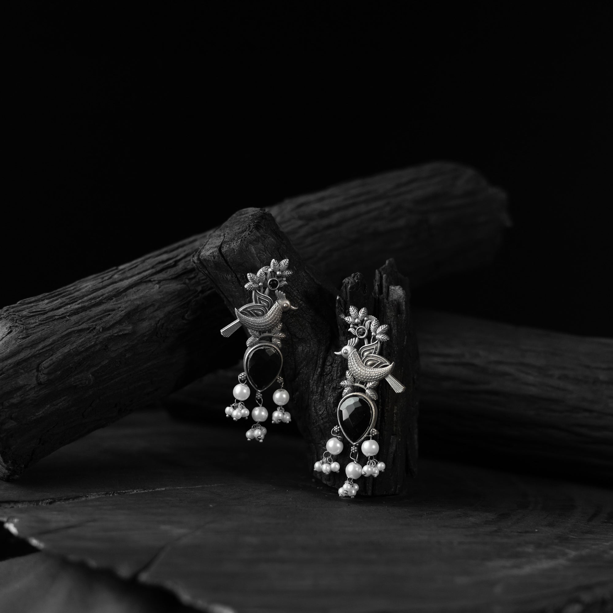 Oxidised handcrafted black earrings made with a blend of metal, stones, pearls, beads, and fine detailing. Perfect for festive occasions, weddings, casual outings, office wear, or vacations. Their elegant black and silver tones pair beautifully with everything from casual jeans and flowy dresses to chic office ensembles. A meaningful gift for mother, sister, wife, or girlfriend adding a beautiful touch of tradition to every moment.
