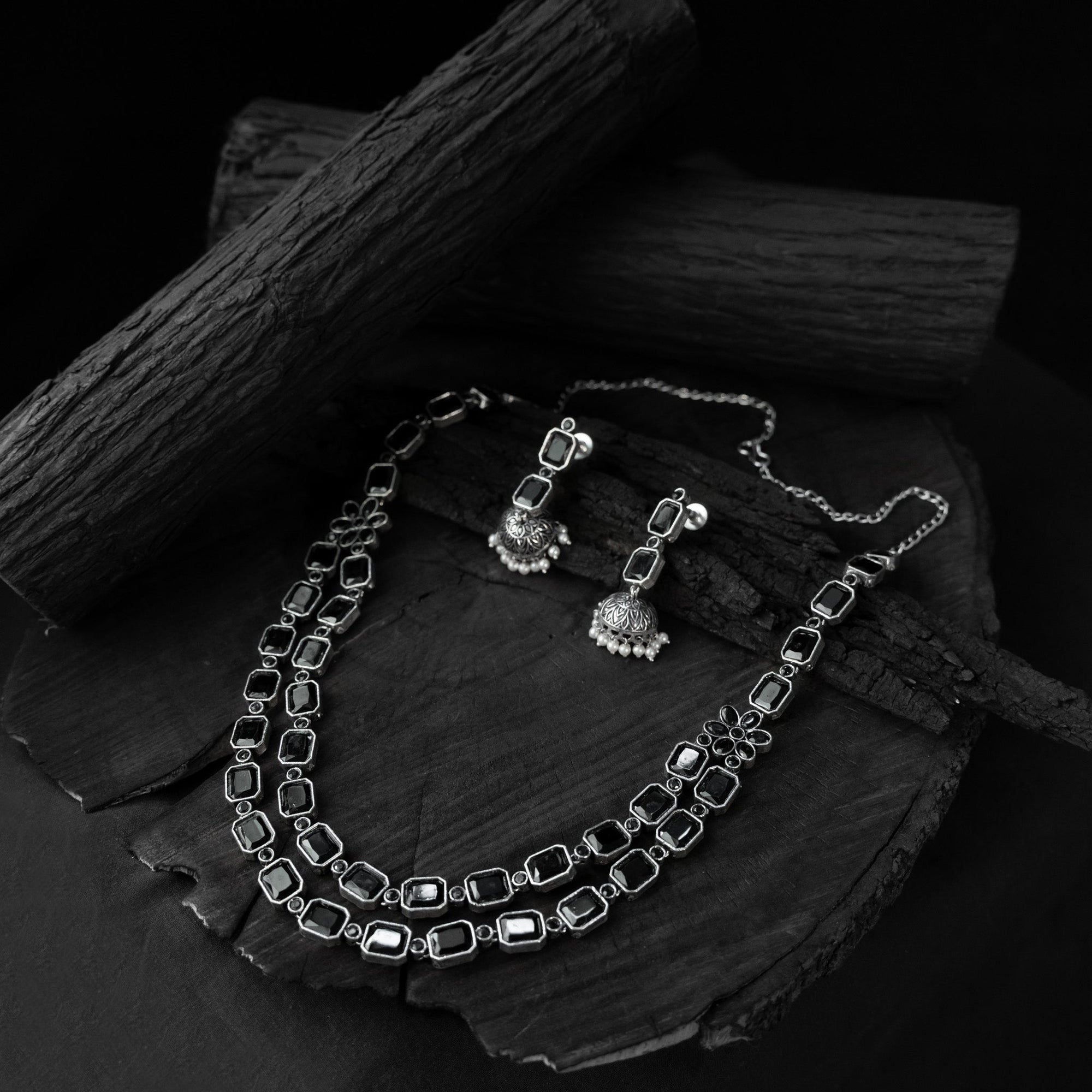 Oxidised handcrafted black necklace set features intricate detailing using varied materials like metal, stones, beads, and artistic motifs. Perfect for festive occasions, weddings, office wear, or casual styling, it pairs beautifully with sarees, kurtas, or contemporary outfits. Complete with matching earrings, this set makes for a thoughtful gift for mother, sister, wife, or girlfriend adding beauty and grace to every special moment.