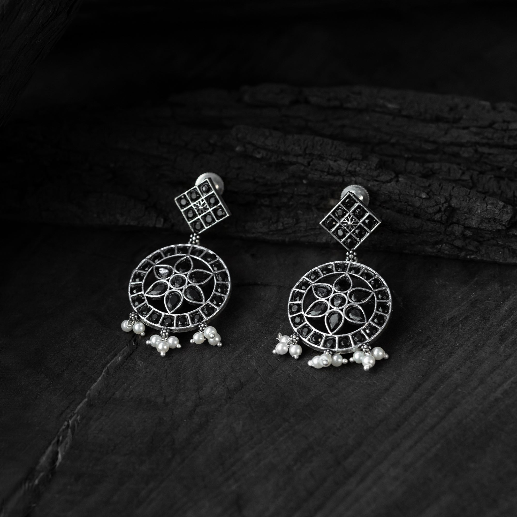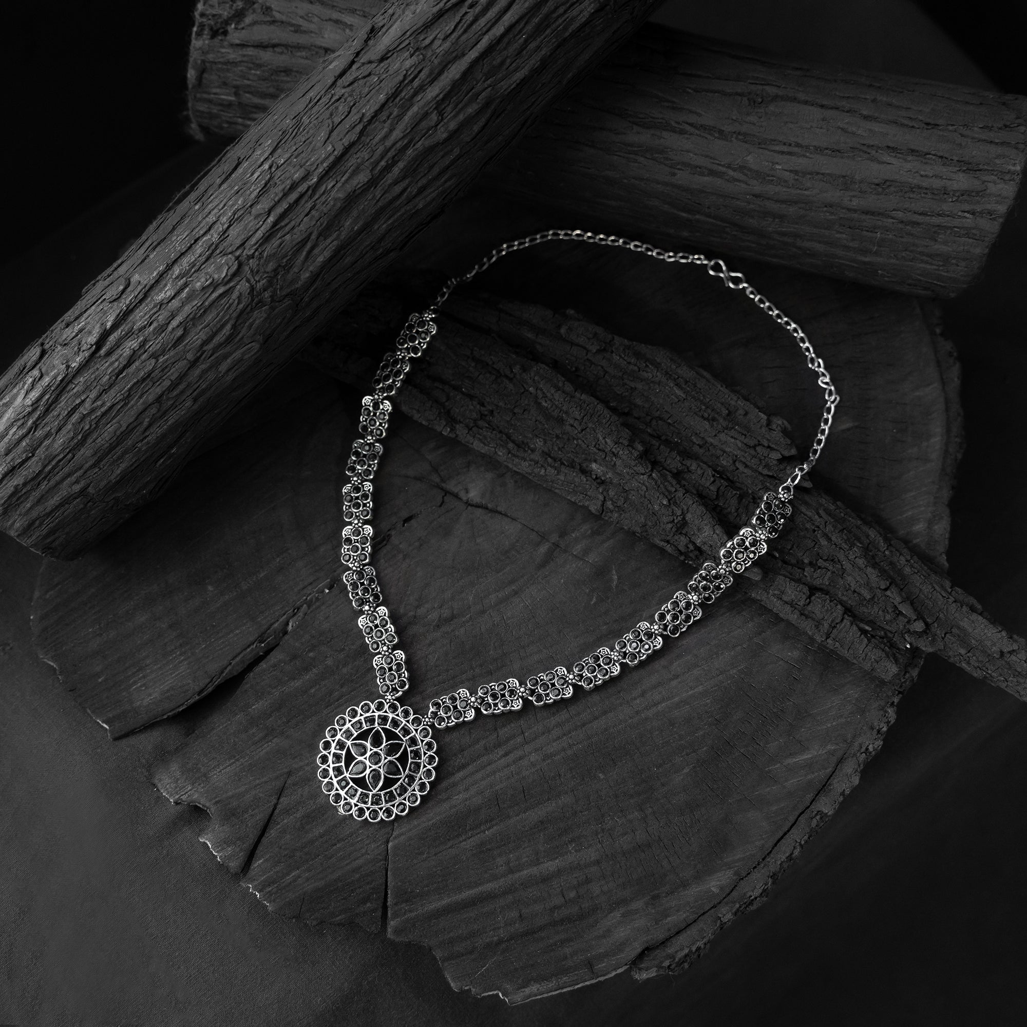 Oxidised handcrafted black necklace set features intricate detailing using varied materials like metal, stones, pearls and artistic motifs. Perfect for festive occasions, weddings, office wear or casual styling it pairs beautifully with sarees, kurtas, or contemporary outfits. Complete with matching earrings, this set makes for a thoughtful gift for mother, sister, wife, or girlfriend adding beauty and grace to every special moment.