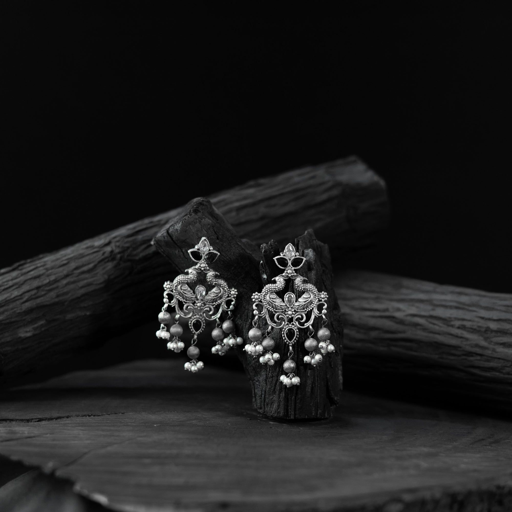 Oxidised handcrafted black earrings made with a blend of metal, stones, pearls, beads, and fine detailing. Perfect for festive occasions, weddings, casual outings, office wear, or vacations. Their elegant black and silver tones pair beautifully with everything from casual jeans and flowy dresses to chic office ensembles. A meaningful gift for mother, sister, wife, or girlfriend adding a beautiful touch of tradition to every moment.