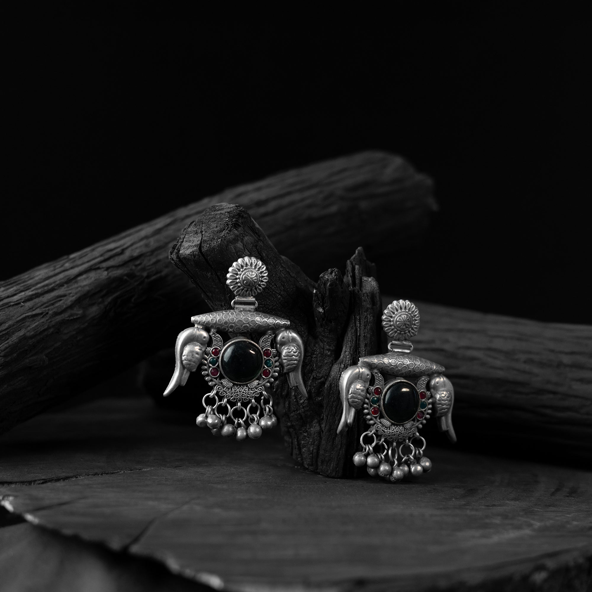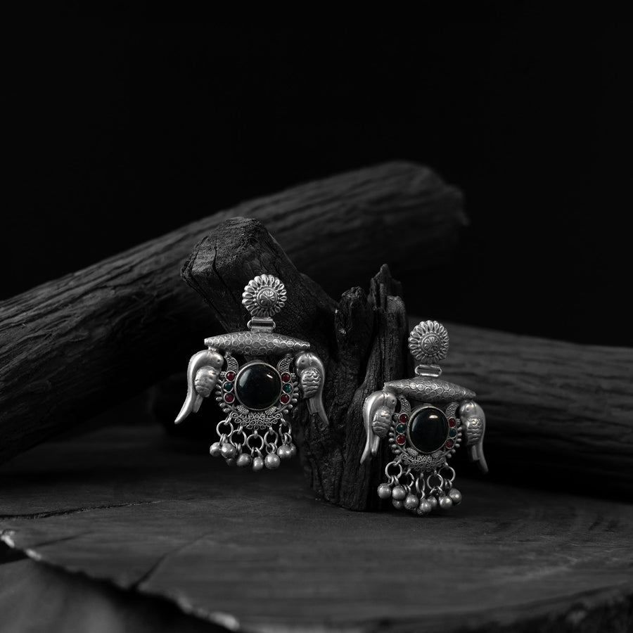 Black Oxidised handcrafted earrings made with a blend of metal, stones and fine detailing. Perfect for festive occasions, weddings, casual outings, office wear, or vacations. Their elegant black and silver tones pair beautifully with everything from casual jeans and flowy dresses to chic office ensembles. A meaningful gift for mother, sister, wife, or girlfriend adding a beautiful touch of tradition to every moment.
