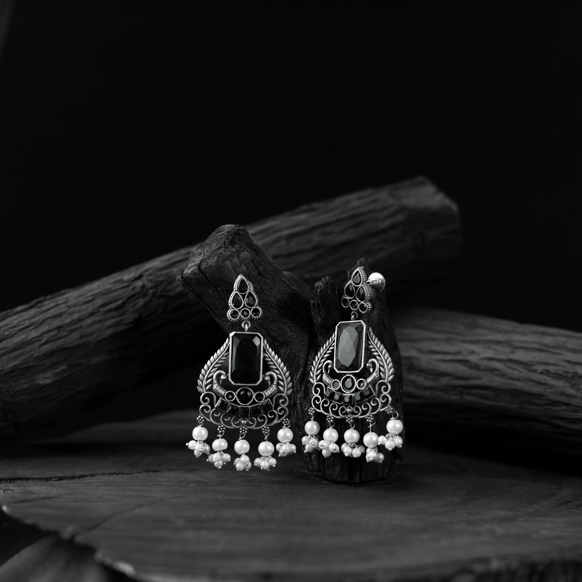 Oxidised handcrafted black earrings made with a blend of metal, stones, pearls, beads, and fine detailing. Perfect for festive occasions, weddings, casual outings, office wear, or vacations. Their elegant black and silver tones pair beautifully with everything from casual jeans and flowy dresses to chic office ensembles. A meaningful gift for mother, sister, wife, or girlfriend adding a beautiful touch of tradition to every moment.