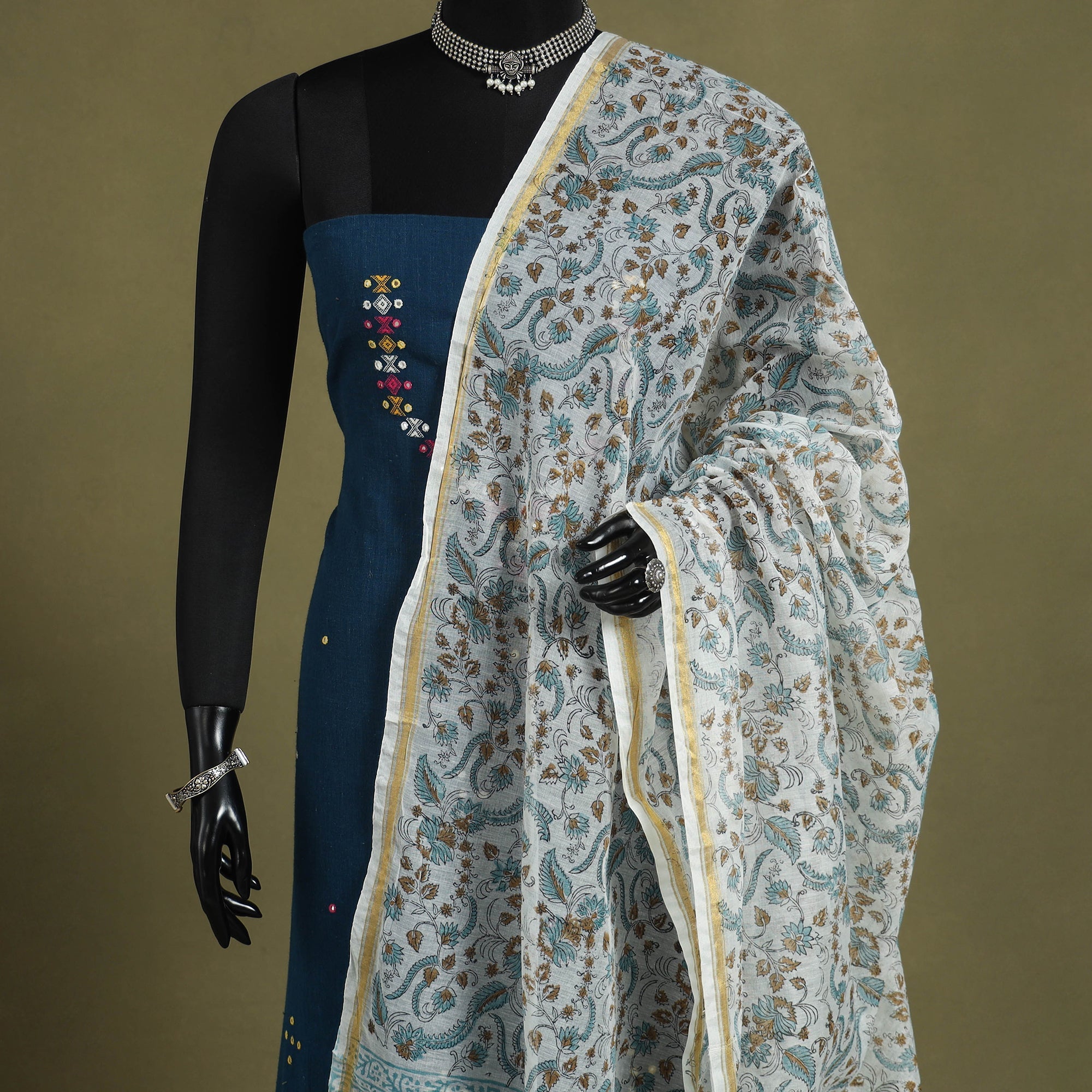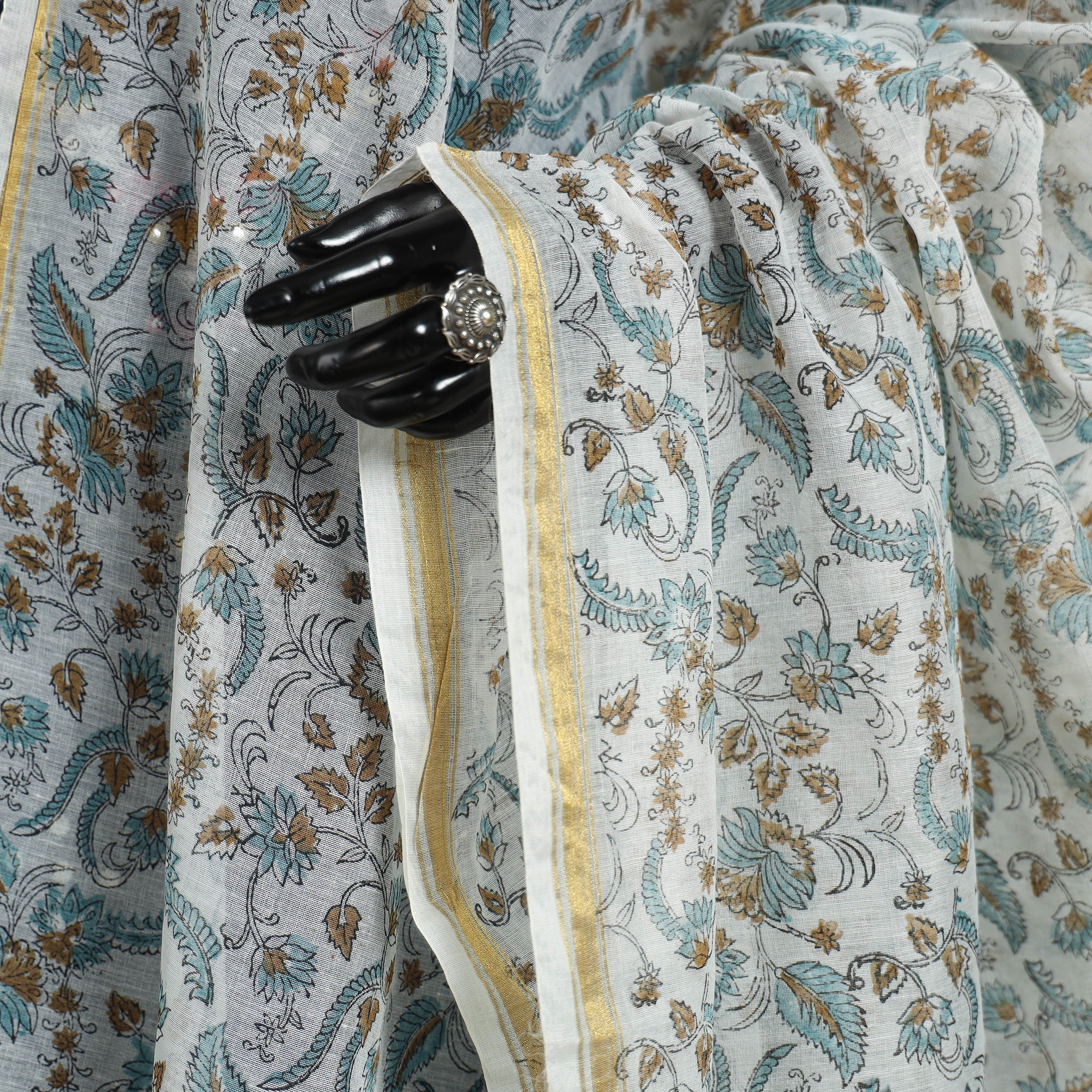 Elevate your style with our exquisite blue sanganeri hand-block printed dupatta, adorned with a zari border and tassels, crafted by skilled artisans of Rajasthan. Made from a kota doria cotton and silk blend, this dupatta features vibrant motifs and is known for its airy texture and subtle transparency. Originating from the town of Sanganer, sanganeri printing is celebrated for its intricate floral patterns, perfect for both ethnic and fusion looks.