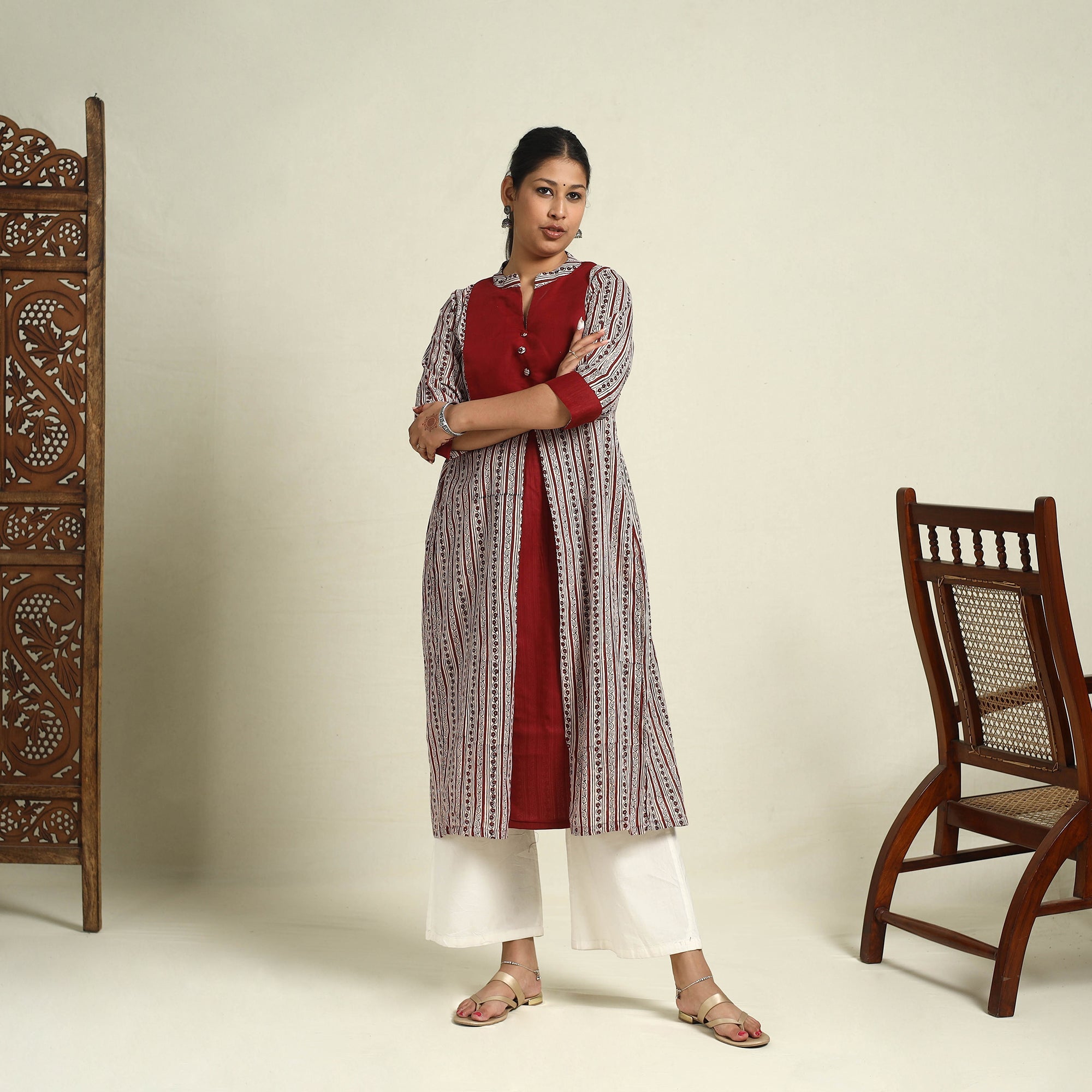 Add a cultural touch to your style with this red block print mul cotton a-line red bagh kurta. Handcrafted using the traditional bagh block printing technique, each design showcases intricate and vibrant patterns. Made from soft, breathable cotton and dyed with eco-friendly natural colours, this kurta offers a seamless blend of comfort and timeless style. Whether for casual outings or festive moments, this kurta is an essential addition to your wardrobe.