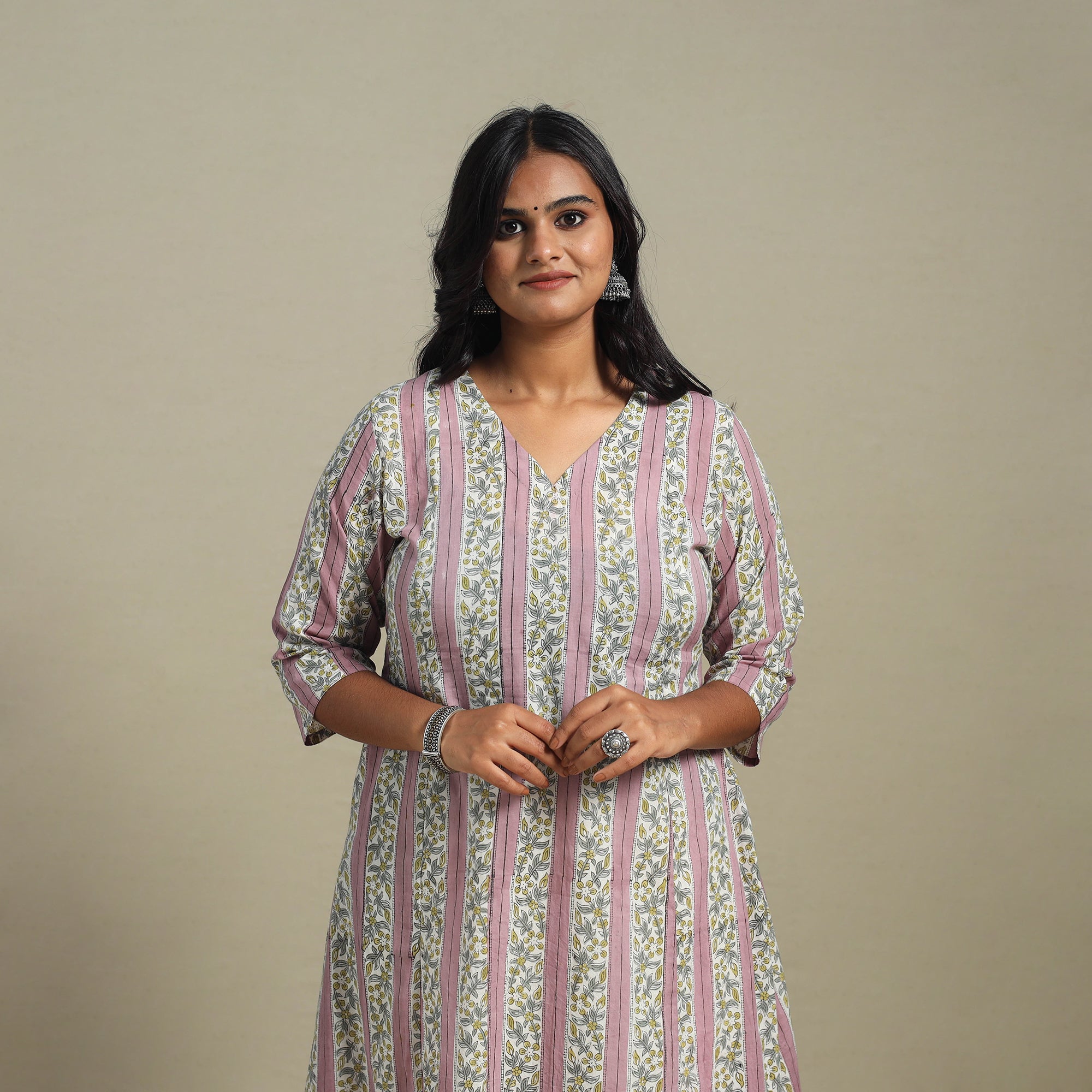 This pink A-line cotton kurta features intricate sanganeri block prints brought to life by skilled hands. The breathable fabric offers long-lasting comfort, and the delicate design adds subtle charm. With a side pocket and a flowy silhouette, it suits everything from brunch dates to festive evenings.