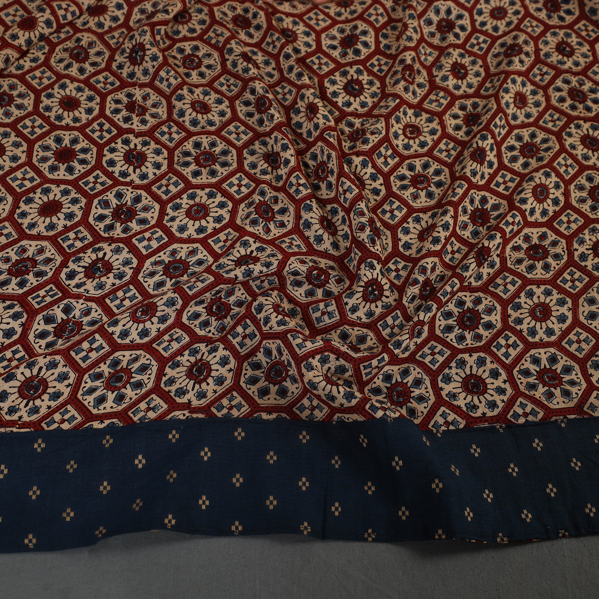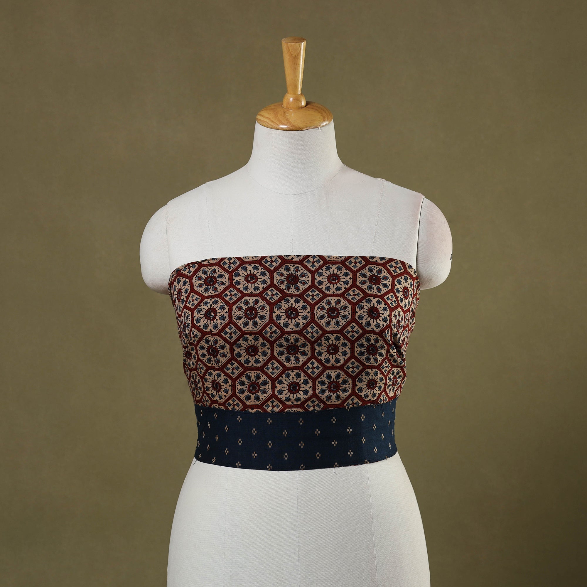 | Material | This maroon cotton blouse piece features traditional ajrakh block printing, crafted by skilled artisans. The fabric showcases intricate patterns created using hand-carved wooden blocks. Blending detailed design with everyday comfort, it can be tailored into your preferred blouse to pair beautifully with sarees. |