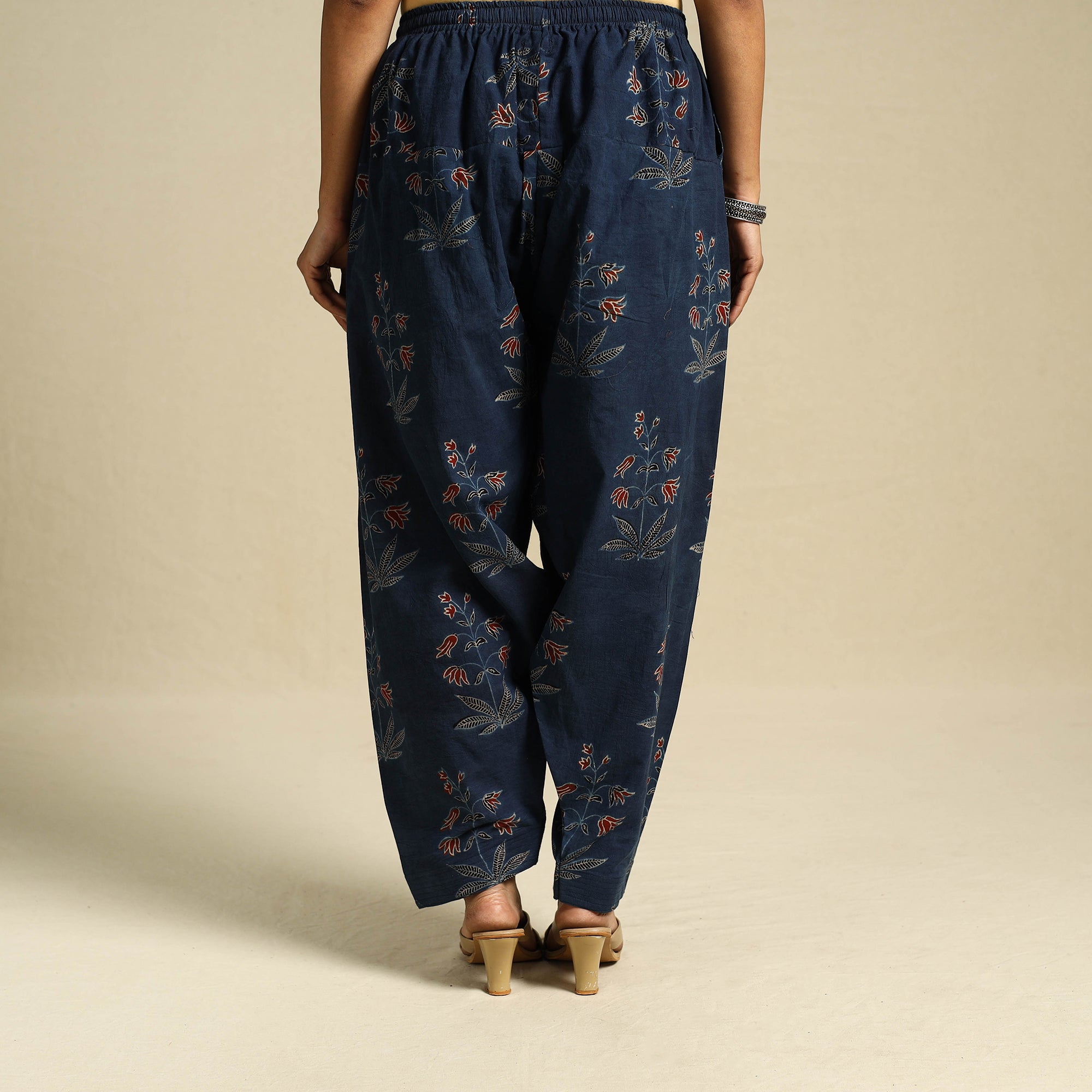 Stay comfortable and stylish in this blue ajrakh cotton salwar. Handcrafted using natural dyes and traditional block printing from Kutch, it features soft cotton fabric, an elasticated waistband, and a handy side pocket. Pair it with a kurta or tunic for a graceful everyday look.
