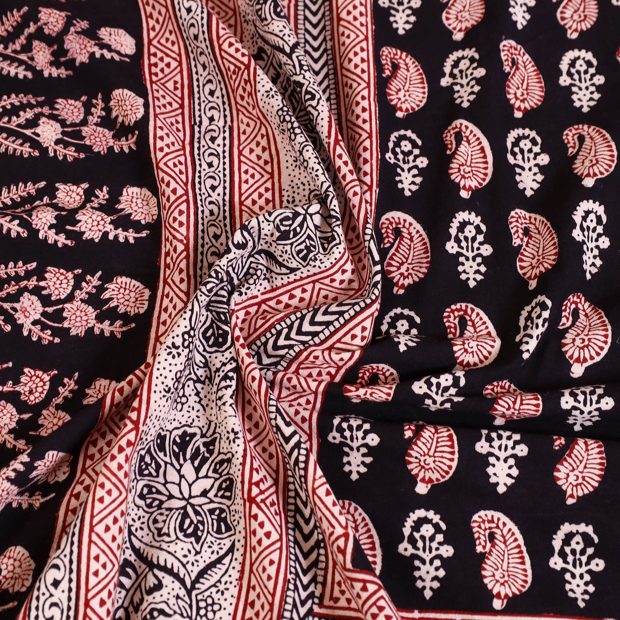 Black - Natural Dyed Cotton Hand Block Bagh Print Fabric 17
