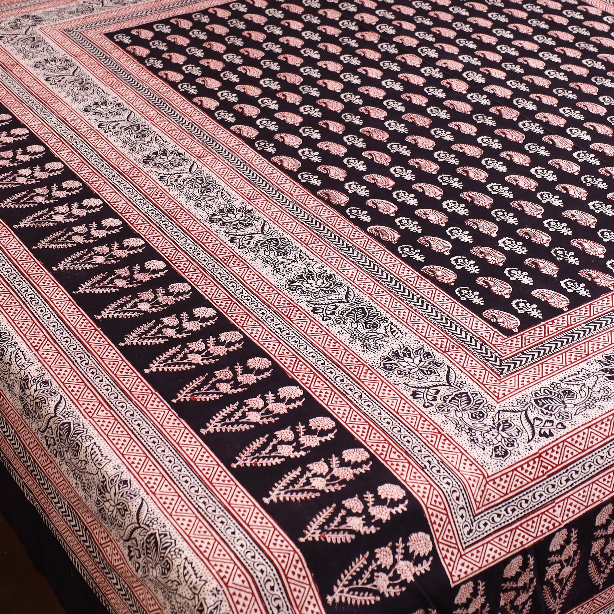 Transform your bedroom with this handcrafted black bagh print cotton bedsheet, designed for double beds. Created by artisans in Bagh Madhya Pradesh, this bed cover features intricate hand block prints made with natural dyes. The rich patterns and eco-friendly craftsmanship bring a blend of tradition and elegance to your home. Perfect for daily use or special occasions, this bedsheet adds warmth and style to any space.