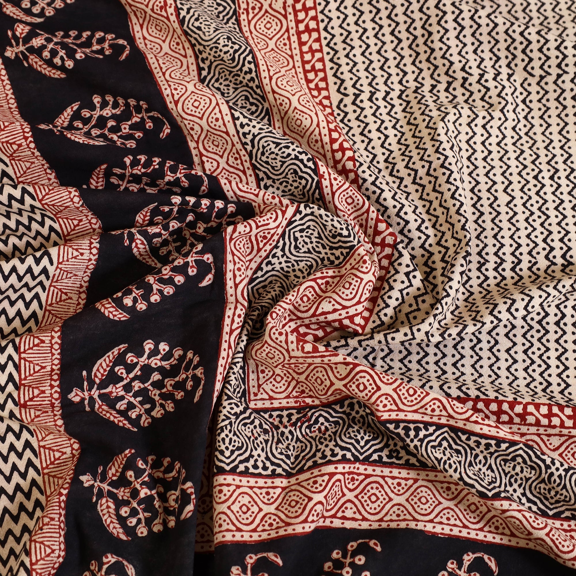 Black - Natural Dyed Cotton Hand Block Bagh Print Fabric 17