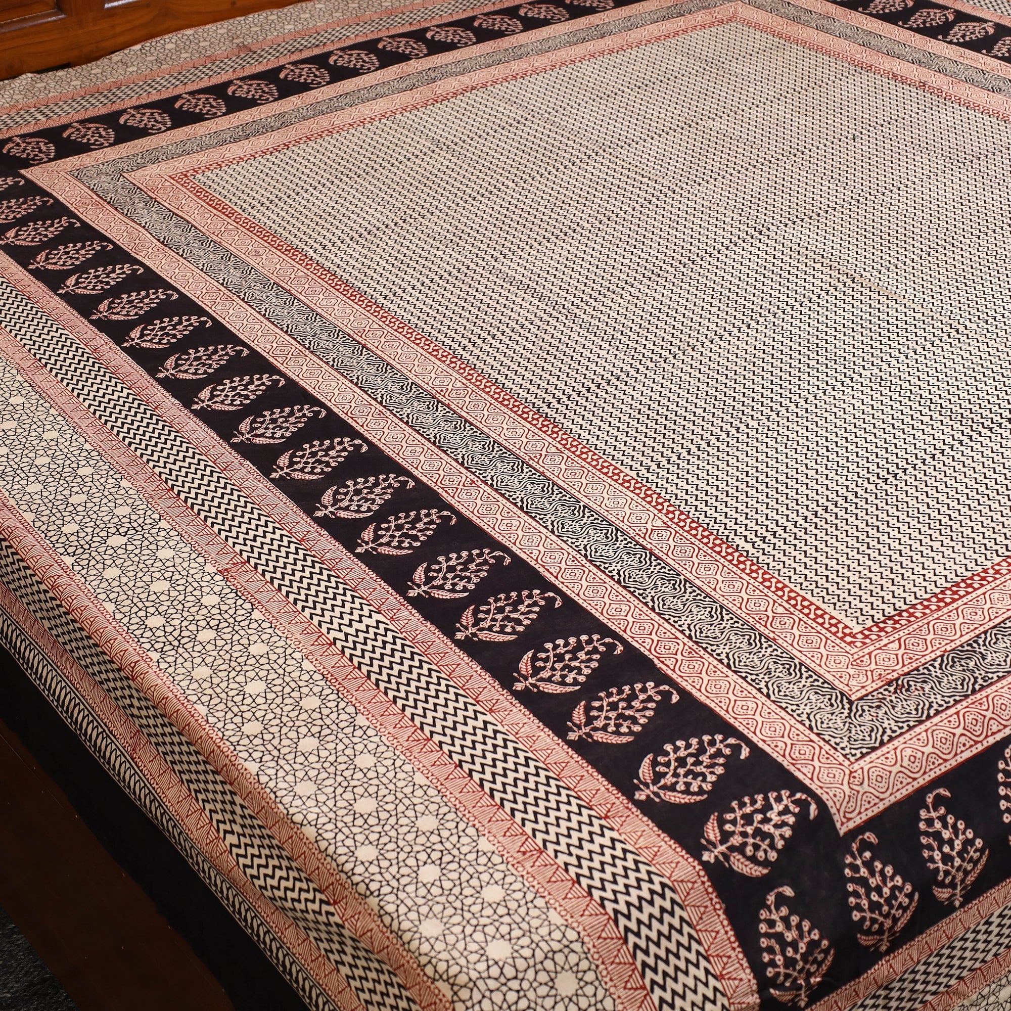 Transform your bedroom with this handcrafted black bagh print cotton bedsheet, designed for double beds. Created by artisans in Bagh Madhya Pradesh, this bed cover features intricate hand block prints made with natural dyes. The rich patterns and eco-friendly craftsmanship bring a blend of tradition and elegance to your home. Perfect for daily use or special occasions, this bedsheet adds warmth and style to any space.