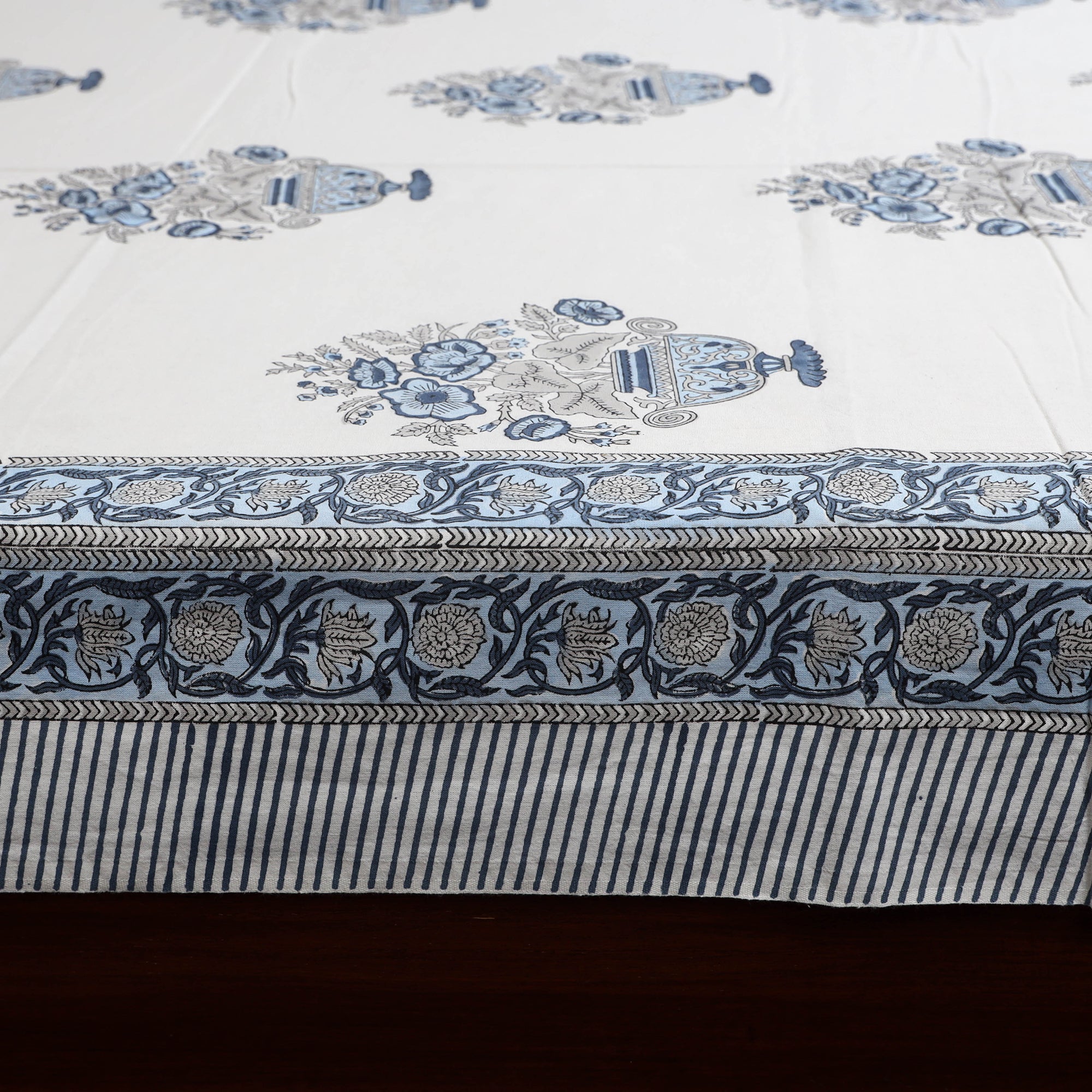 Sanganeri block print cotton bed sheet set, crafted by artisans of Rajasthan. Made using hand block printing techniques with bleed-free VAT dyes it ensures long-lasting vibrancy. Adorned with floral motifs this double bed sheet set includes matching pillow covers for a coordinated and complete look.