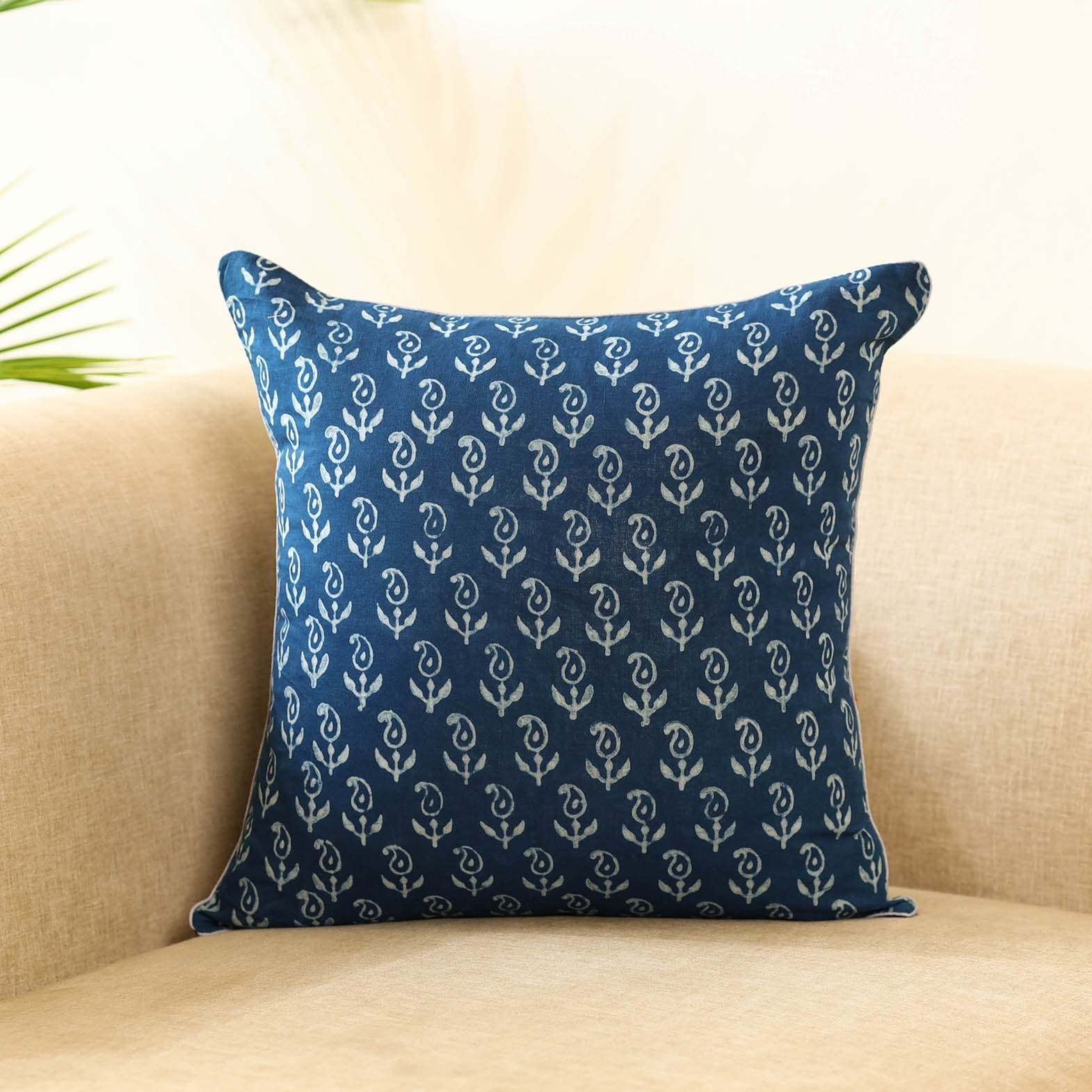 • Buy Block Print Cotton Indigo bagru Cushion Cover