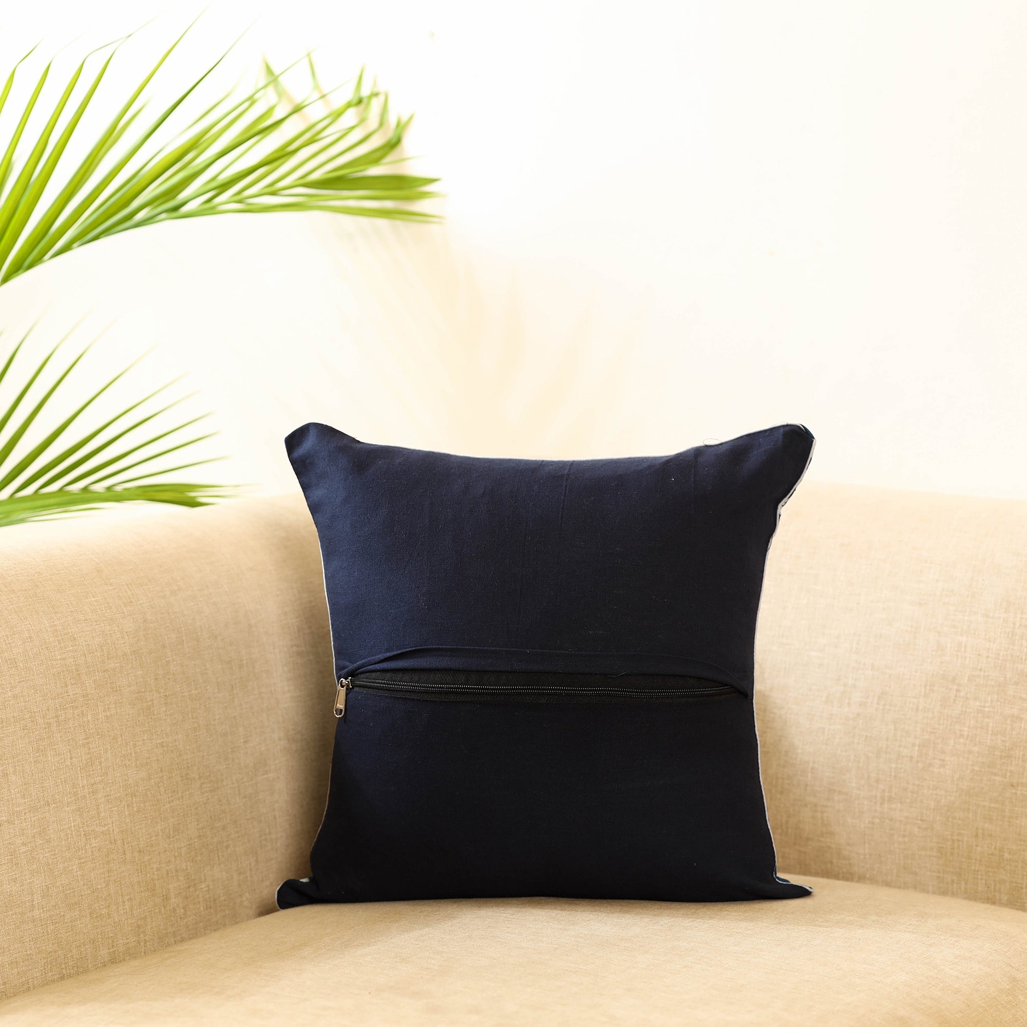 Add a soft and stylish touch to your living space with this blue block print Indigo bagru cushion cover, crafted from pure cotton and traditional Indian handmade textiles. The handcrafted artistry make it perfect for your sofa, bed, or lounge area.