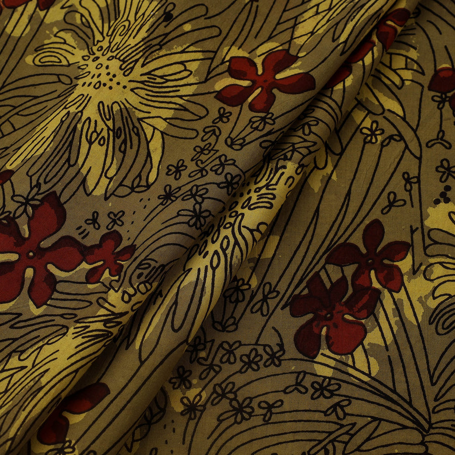 Green - Block Print Cotton Natural Dyed Jahota Fabric 15
