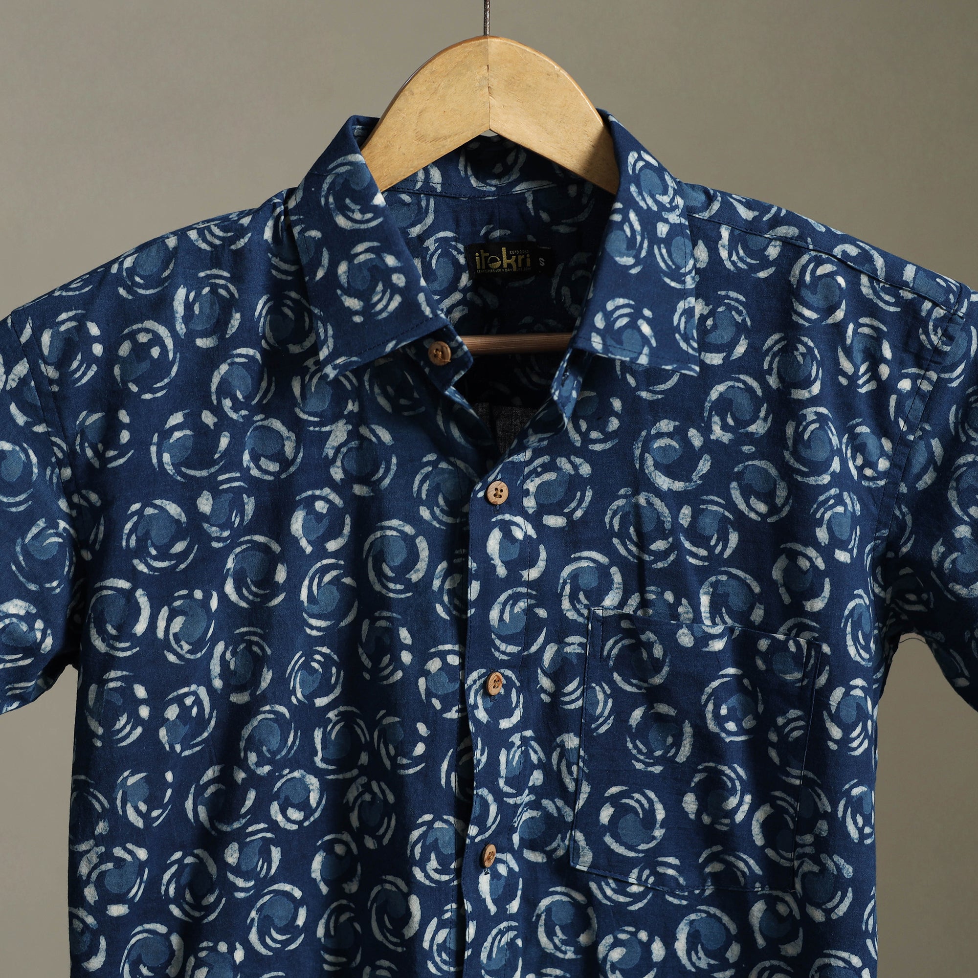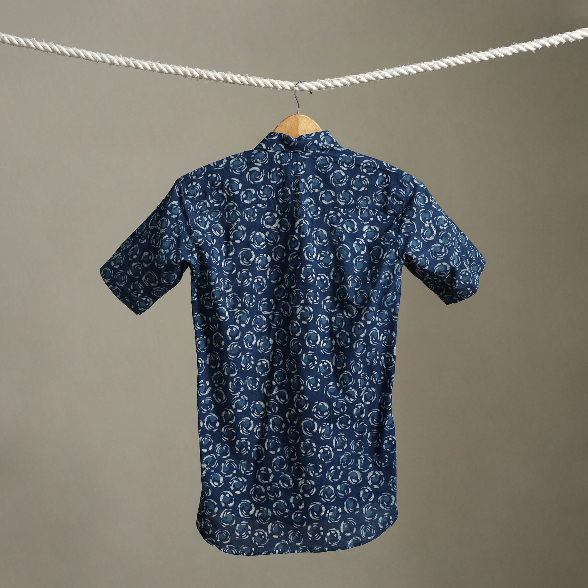 Made using the age-old blue bagru indigo block printing technique from Rajasthan, this cotton shirt blends tradition with everyday ease. Designed with a regular collar, full sleeves, and a functional front pocket, it’s perfect for casual wear. Wooden buttons add a natural touch to its appeal. A thoughtful pick for those who appreciate handmade charm and Indian craftsmanship.