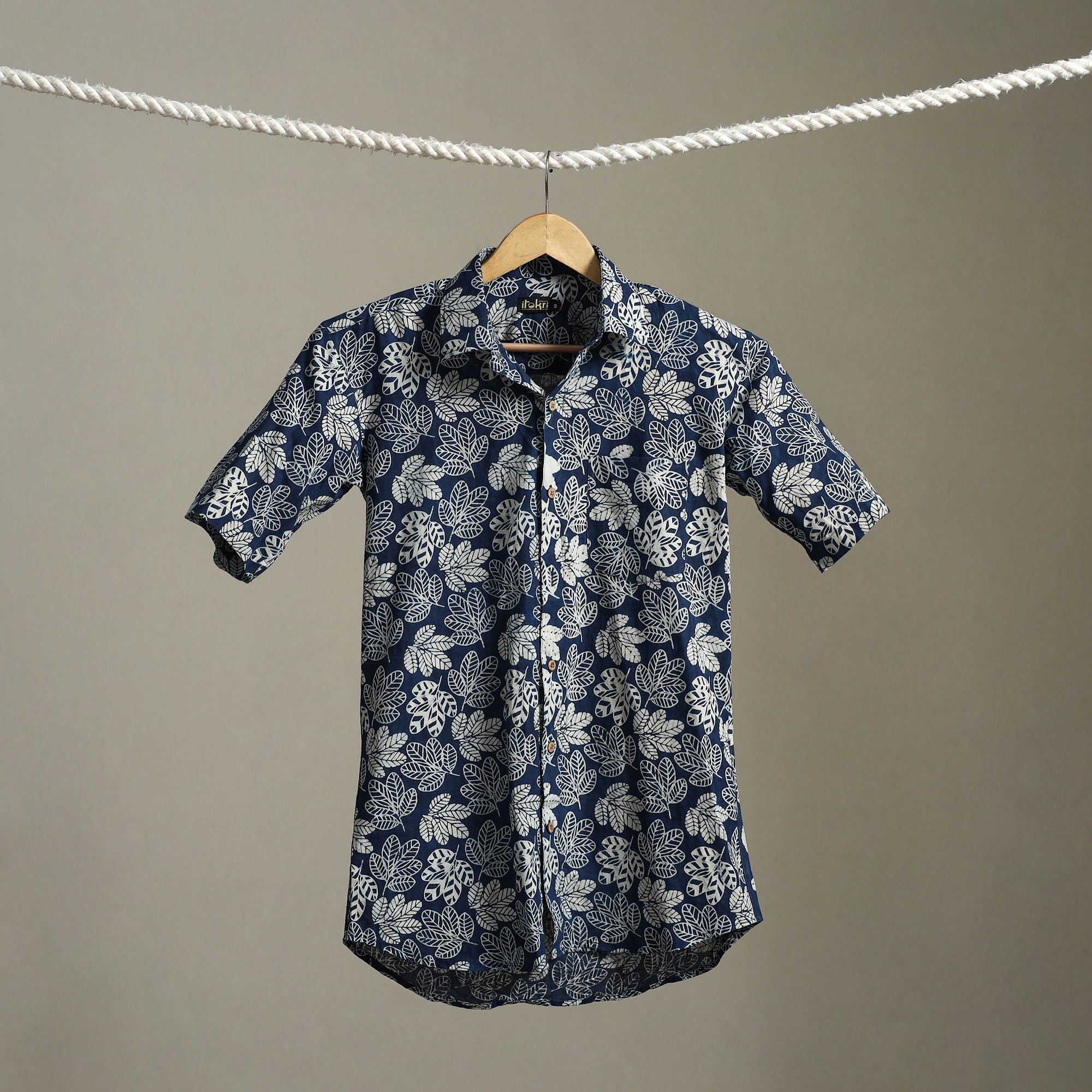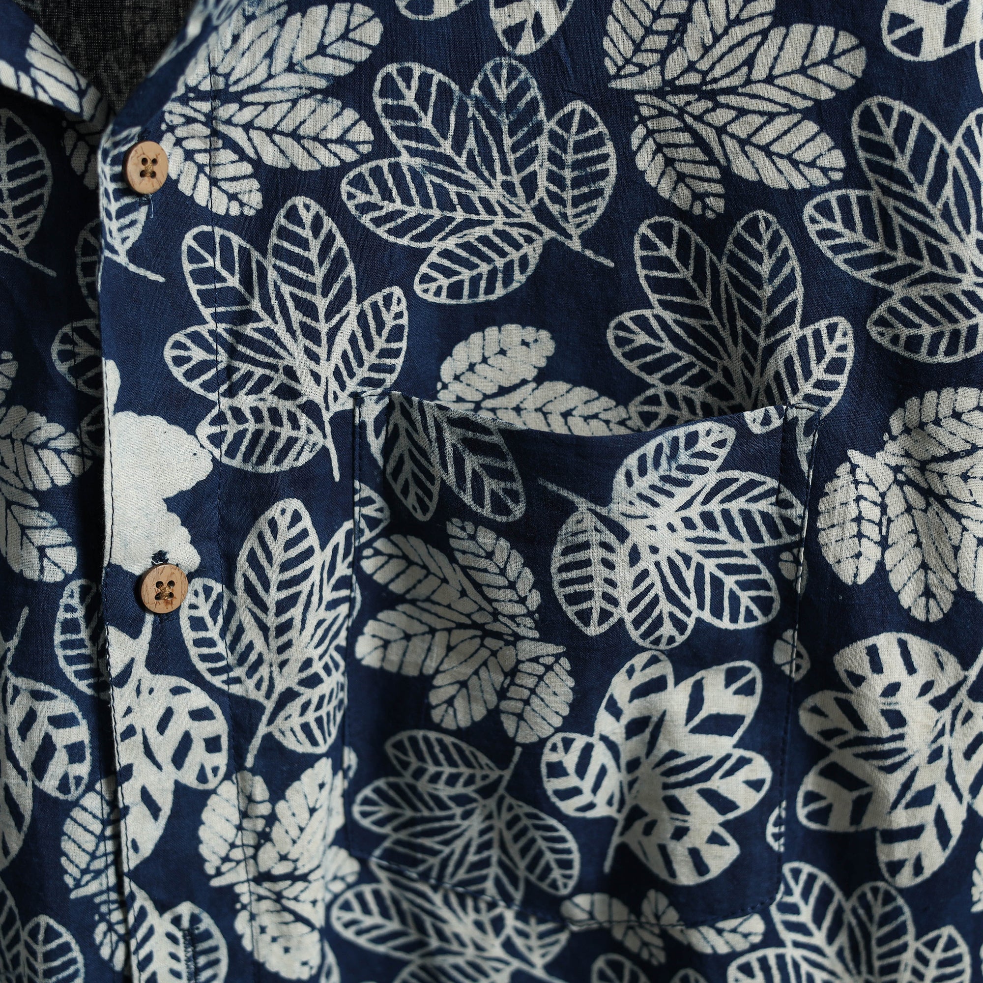 Made using the age-old blue bagru indigo block printing technique from Rajasthan, this cotton shirt blends tradition with everyday ease. Designed with a regular collar, full sleeves, and a functional front pocket, it’s perfect for casual wear. Wooden buttons add a natural touch to its appeal. A thoughtful pick for those who appreciate handmade charm and Indian craftsmanship.