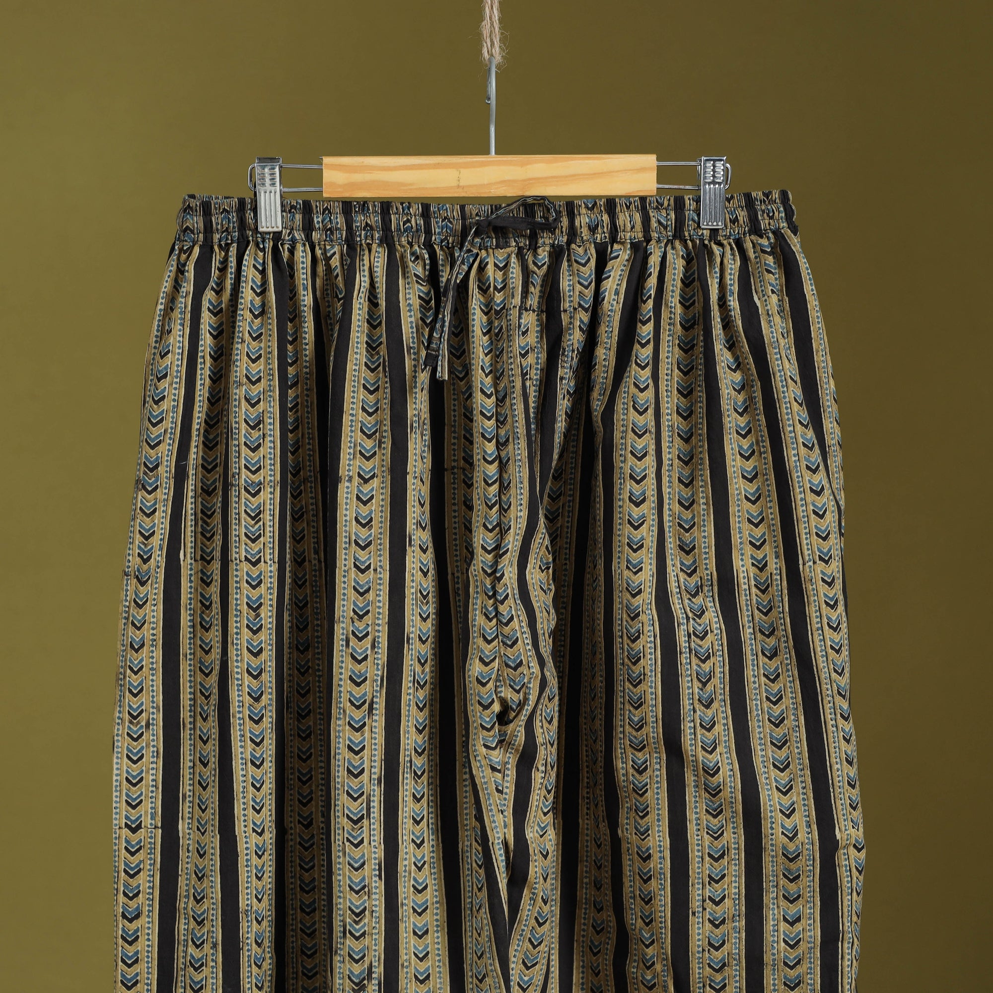 Add a touch of traditional charm to your wardrobe with this yellow ajrakh print women’s salwar. Inspired by the centuries-old ajrakh art from Kutch, each design is block printed using natural dyes in rich earthy tones. The cotton fabric with an elasticated waist and drawstring ensures all-day comfort and ease. Pair it with your favourite kurta to complete a graceful, elegant look.