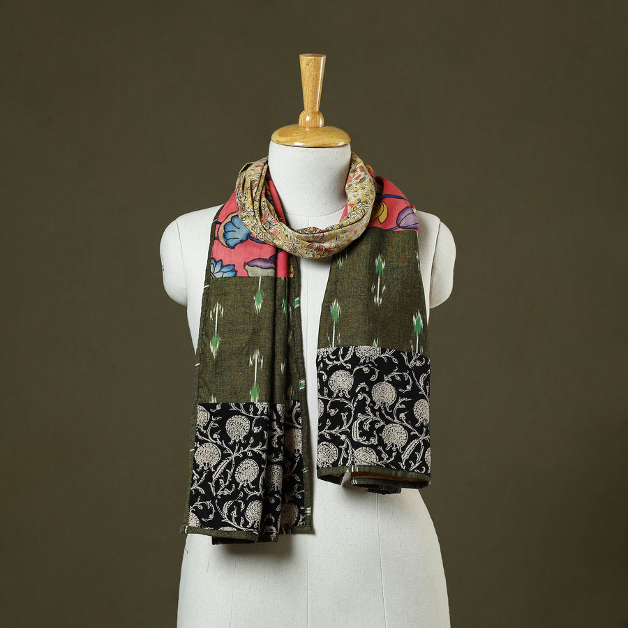 | Material | This multicolor cotton patchwork kalamkari stole features motifs inspired by nature and mythology. Crafted using the kalamkari technique, it showcases intricate designs with vibrant patchwork accents. A versatile accessory, it adds charm and elegance to any outfit, making it suitable for office wear, casual outings, or cultural gatherings, while reflecting the richness of Indian textile traditions. |