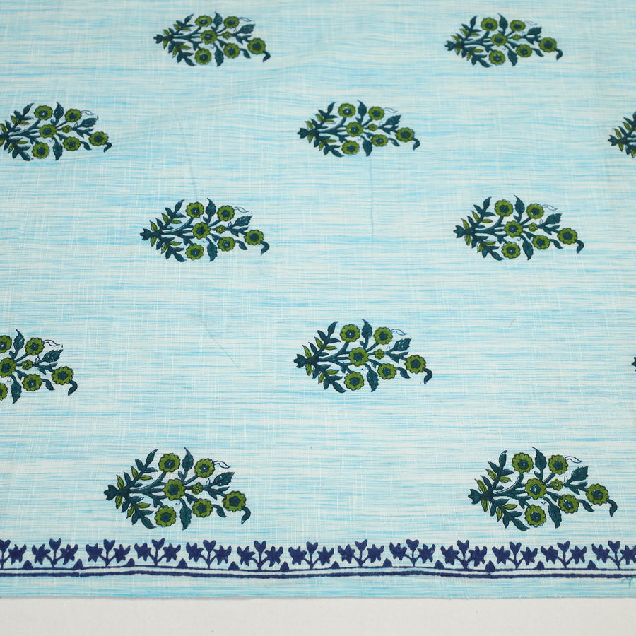 Block print cotton blue sanganeri blouse piece. Featuring floral patterns, it showcases traditional printing techniques. Lightweight and comfortable, this blouse piece is perfect to pair with any saree and enhance your look.