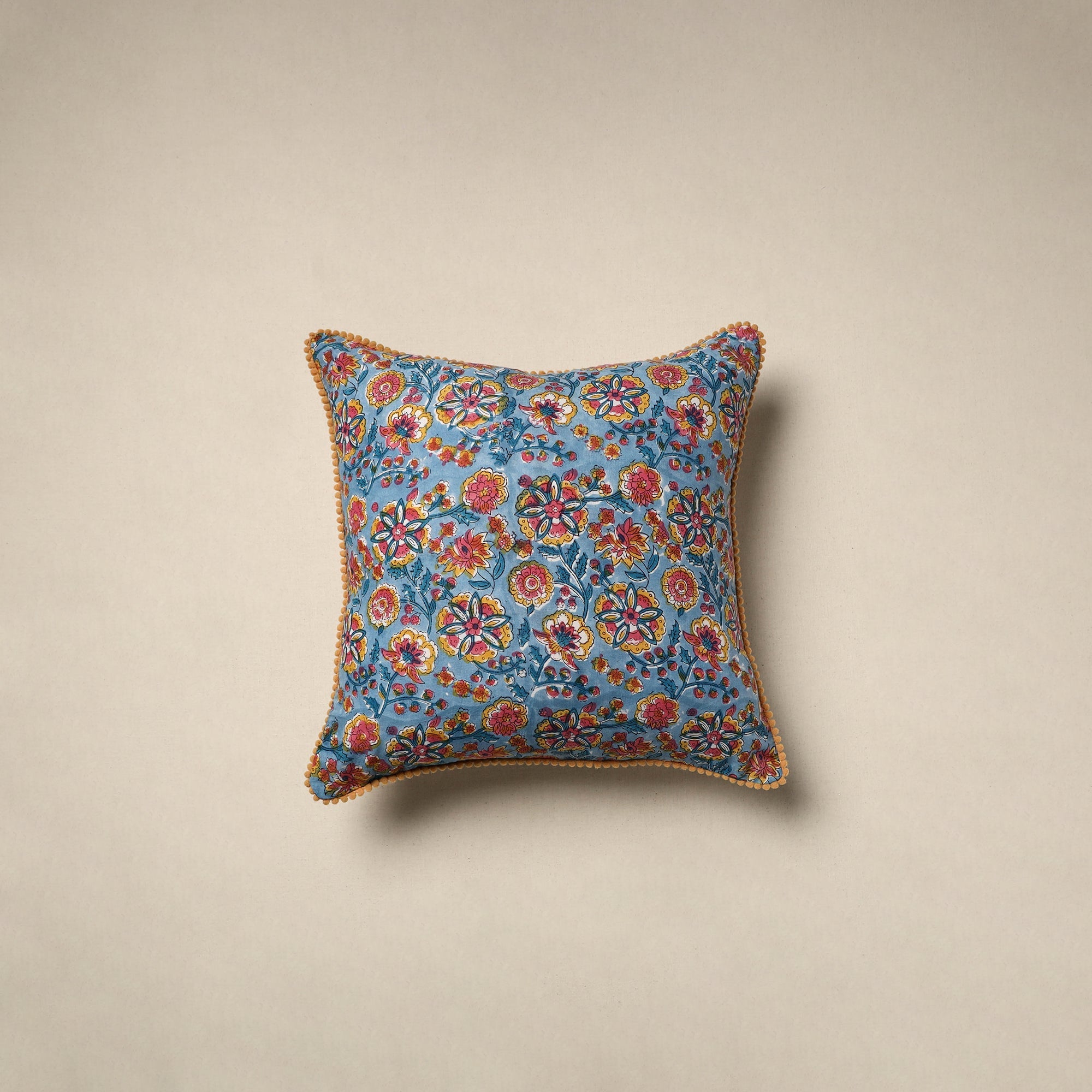 Style up your space with this beautiful blue sanganeri cushion cover. Hand block printed by artisans in Rajasthan, it features delicate floral motifs and pom-pom edges. Made from soft cotton, it’s perfect for your sofa, bed or that cozy corner you love to unwind in.
