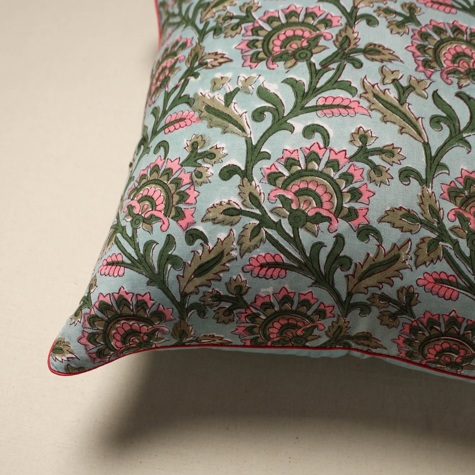 Add a touch of tradition to your space with this sanganeri block-printed cushion cover. It reflects the charm of age-old art. Crafted from soft cotton, it brings both comfort and culture to your home. Ideal for sofas, chairs, or beds.