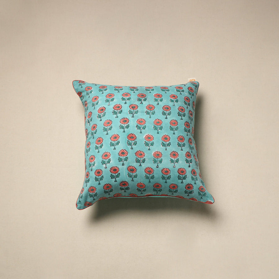 Add a touch of tradition to your space with this sanganeri block-printed cushion cover. It reflects the charm of age-old art. Crafted from soft cotton, it brings both comfort and culture to your home. Ideal for sofas, chairs, or beds.