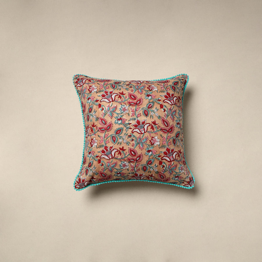 Style up your space with this beautiful brown sanganeri cushion cover. Hand block printed by artisans in Rajasthan, it features delicate floral motifs and pom-pom edges. Made from soft cotton, it’s perfect for your sofa, bed or that cozy corner you love to unwind in.