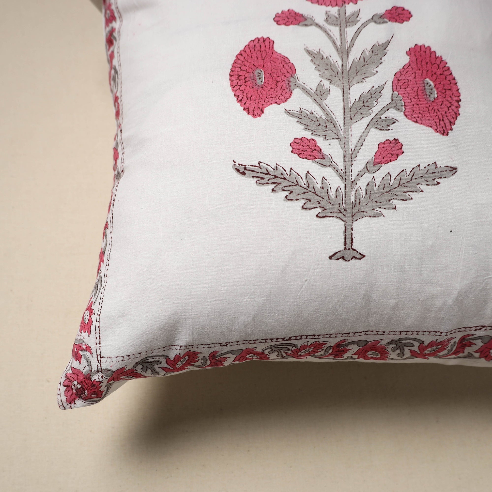 Add a touch of charm to your home with this pink sanganeri block printed cotton cushion cover. Made using traditional hand block printing from Rajasthan, each piece features delicate motifs on soft cotton fabric. Perfect for sofas, chairs, or beds, it beautifully combines comfort with Indian artistry for everyday elegance.
