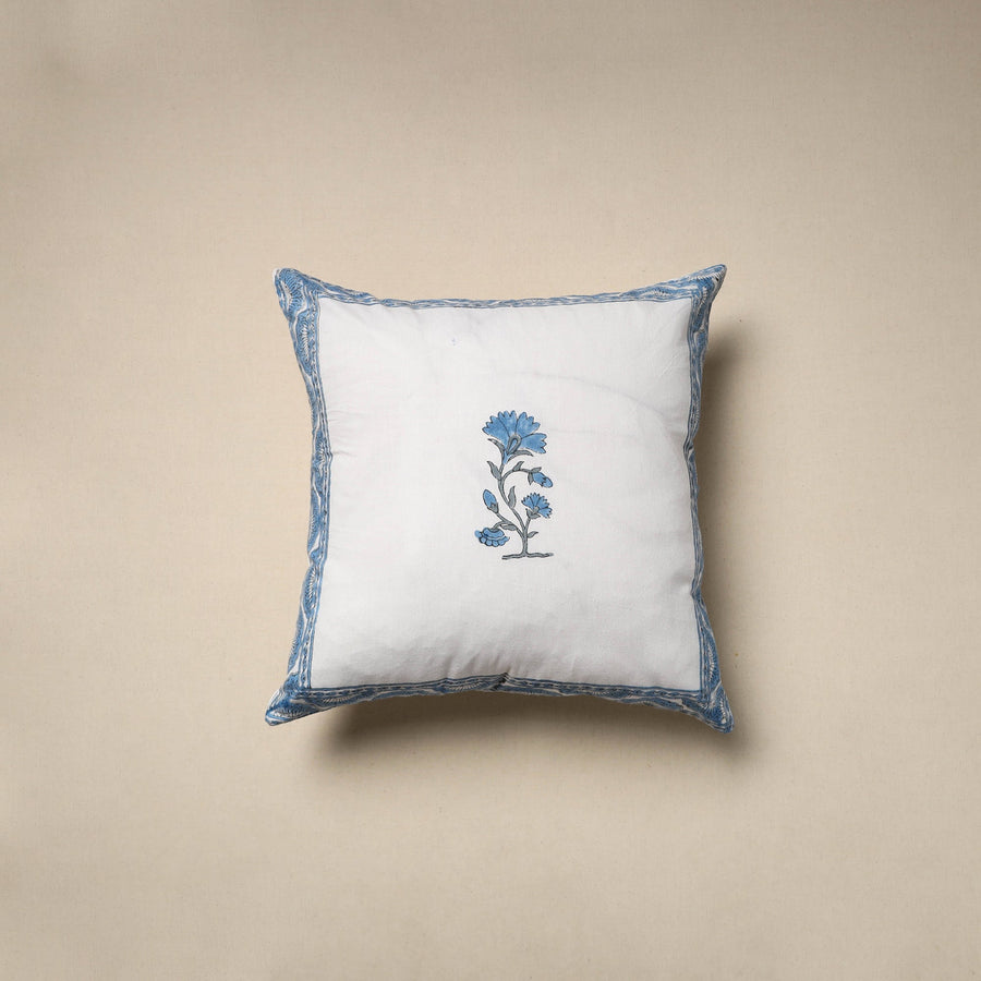 Add a touch of charm to your home with this blue sanganeri block printed cotton cushion cover. Made using traditional hand block printing from Rajasthan, each piece features delicate motifs on soft cotton fabric. Perfect for sofas, chairs, or beds, it beautifully combines comfort with Indian artistry for everyday elegance.