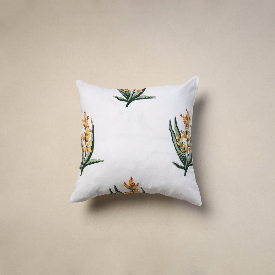 Add a touch of charm to your home with this white sanganeri block printed cotton cushion cover. Made using traditional hand block printing from Rajasthan, each piece features delicate motifs on soft cotton fabric. Perfect for sofas, chairs, or beds, it beautifully combines comfort with Indian artistry for everyday elegance.