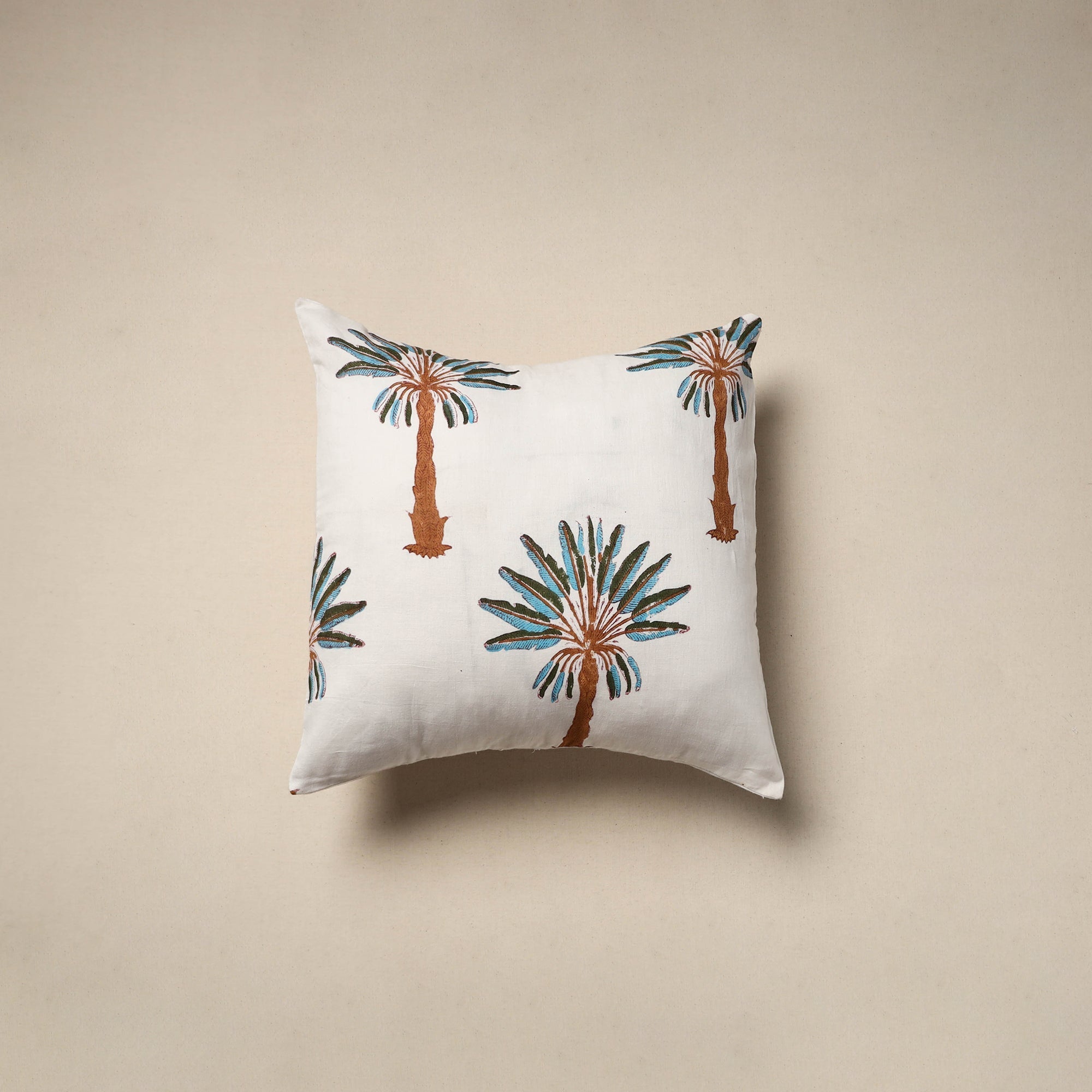 Blue - Block Print Cotton Sanganeri Cushion Cover (16 x 16 in) 110