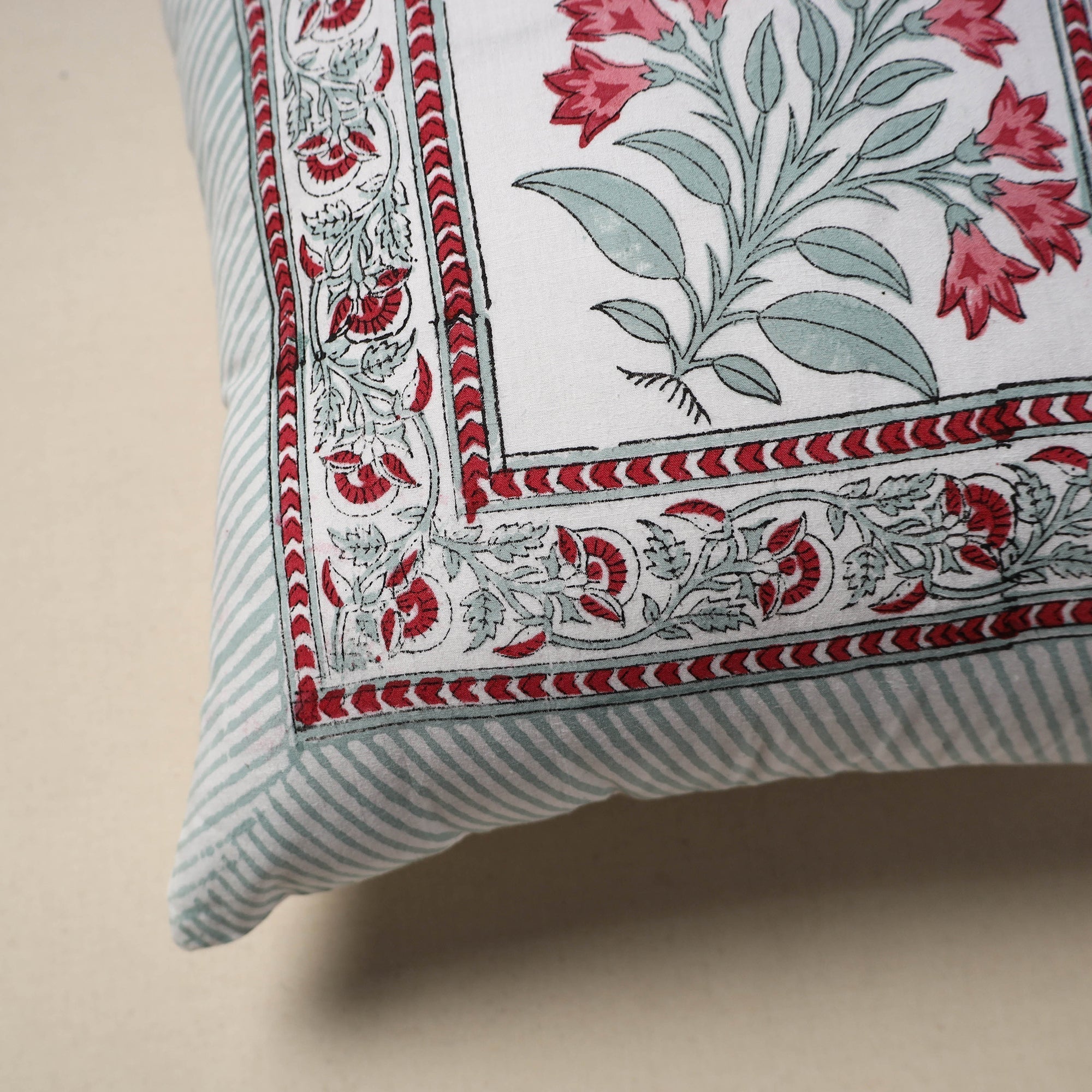 Add a touch of charm to your home with this green sanganeri block printed cotton cushion cover. Made using traditional hand block printing from Rajasthan, each piece features delicate motifs on soft cotton fabric. Perfect for sofas, chairs, or beds, it beautifully combines comfort with Indian artistry for everyday elegance.