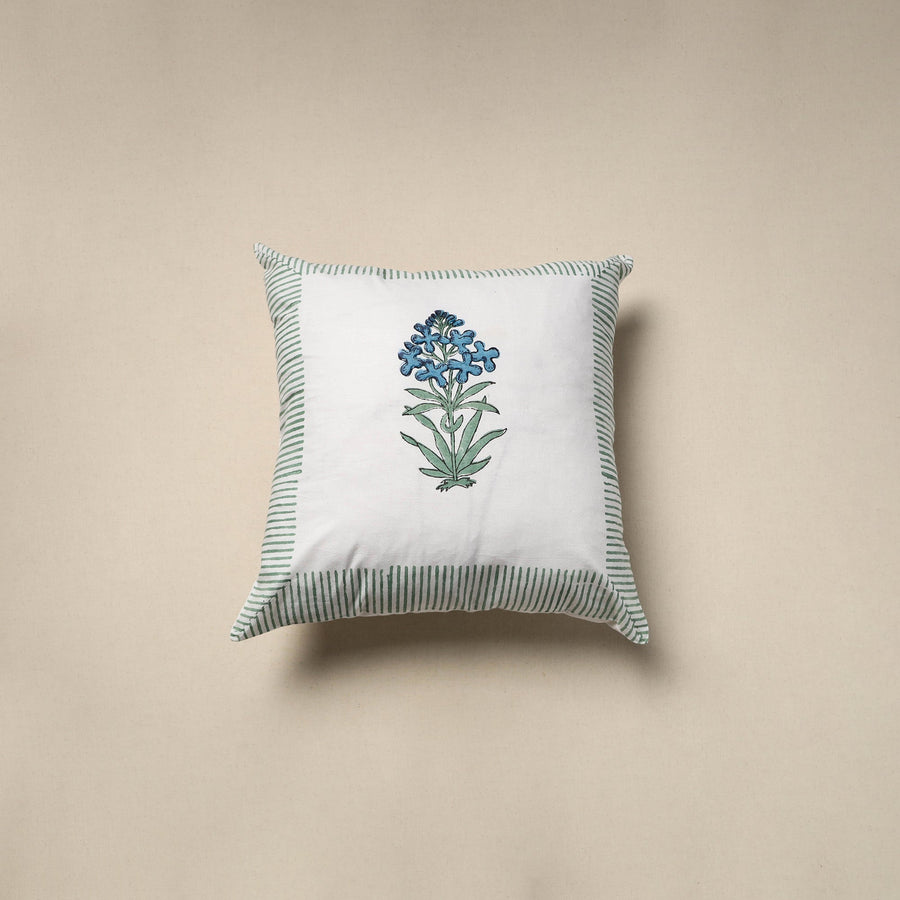 White - Block Print Cotton Sanganeri Cushion Cover (16 x 16 in) 13