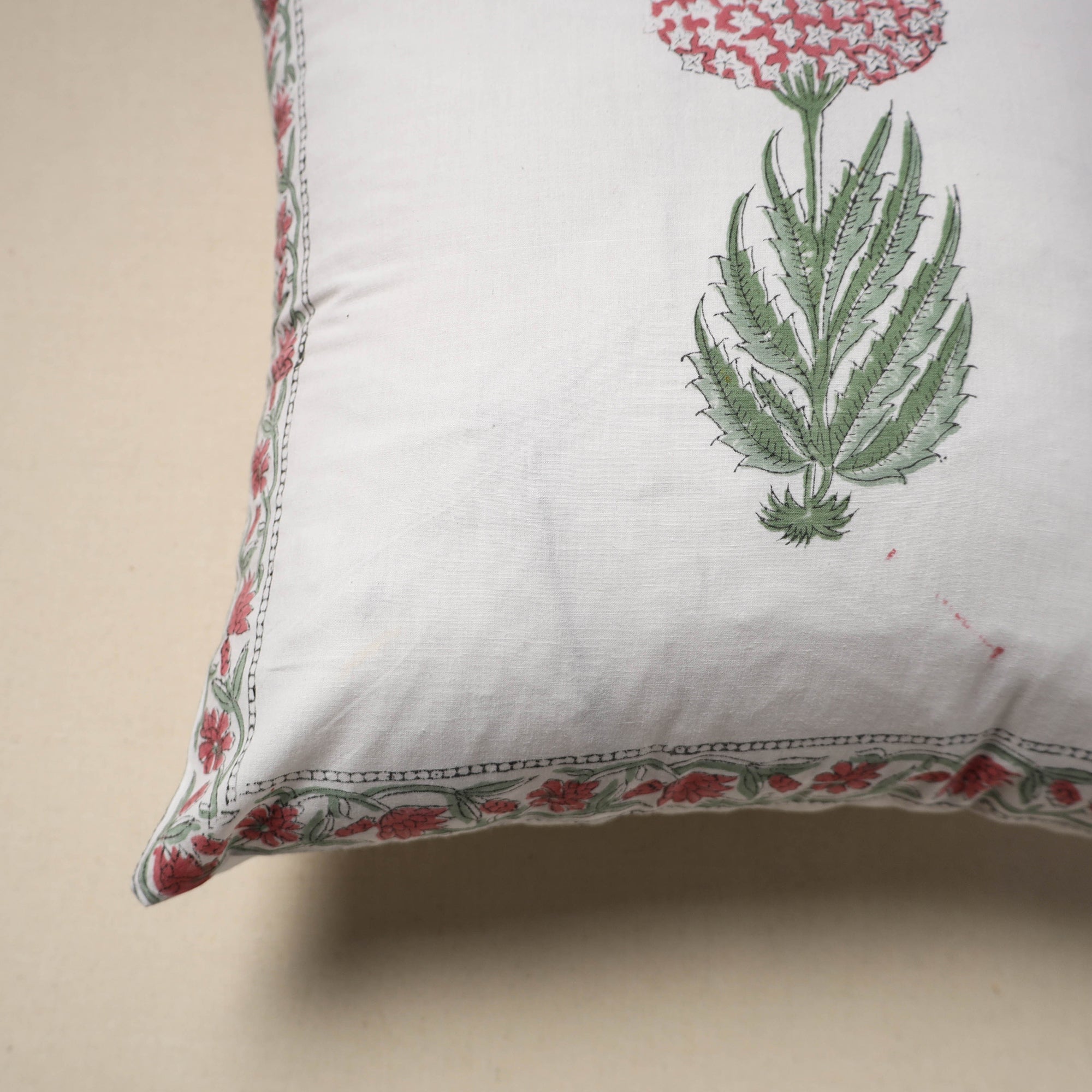 White - Block Print Cotton Sanganeri Cushion Cover (16 x 16 in) 17