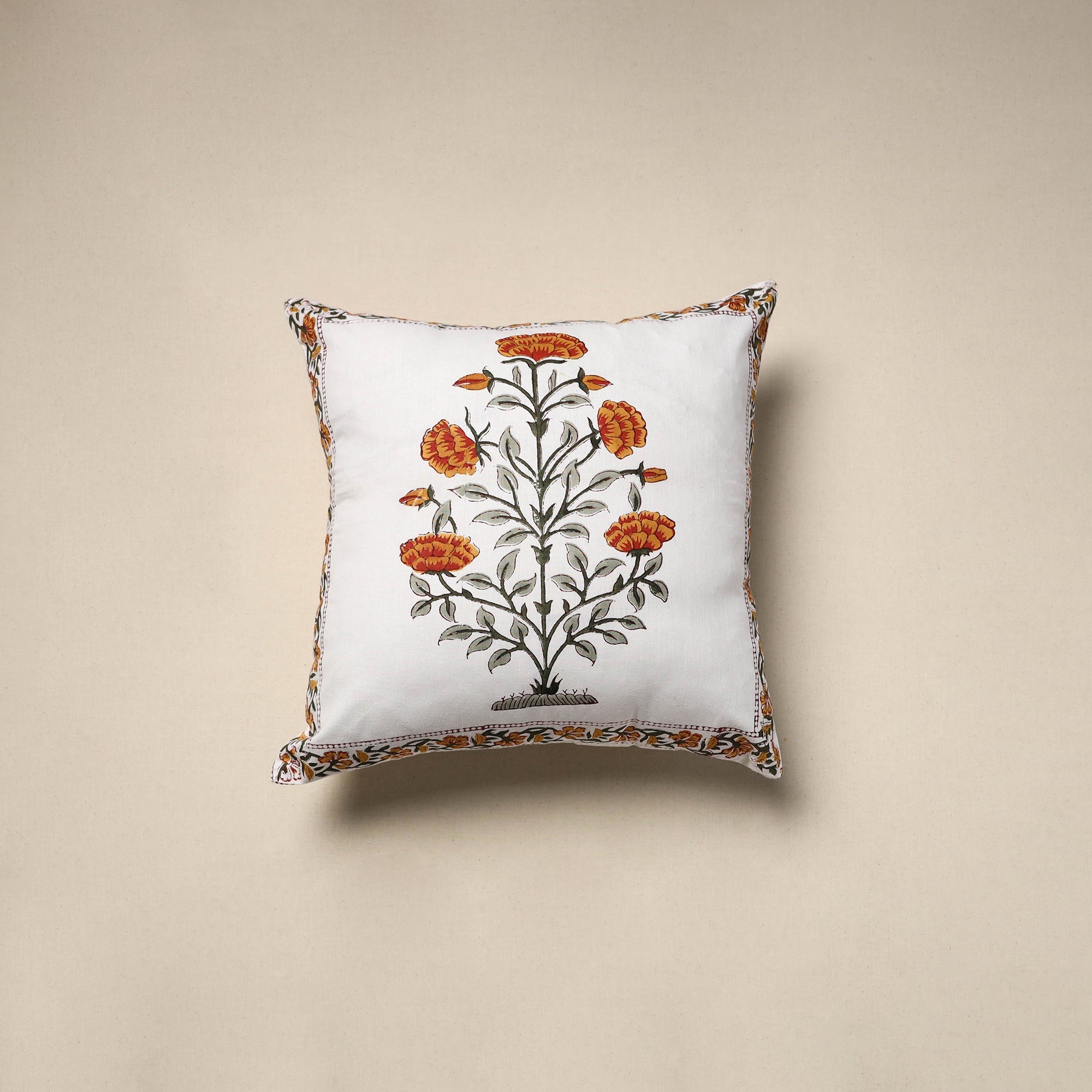 Add a touch of charm to your home with this white sanganeri block printed cotton cushion cover. Made using traditional hand block printing from Rajasthan, each piece features delicate motifs on soft cotton fabric. Perfect for sofas, chairs, or beds, it beautifully combines comfort with Indian artistry for everyday elegance.