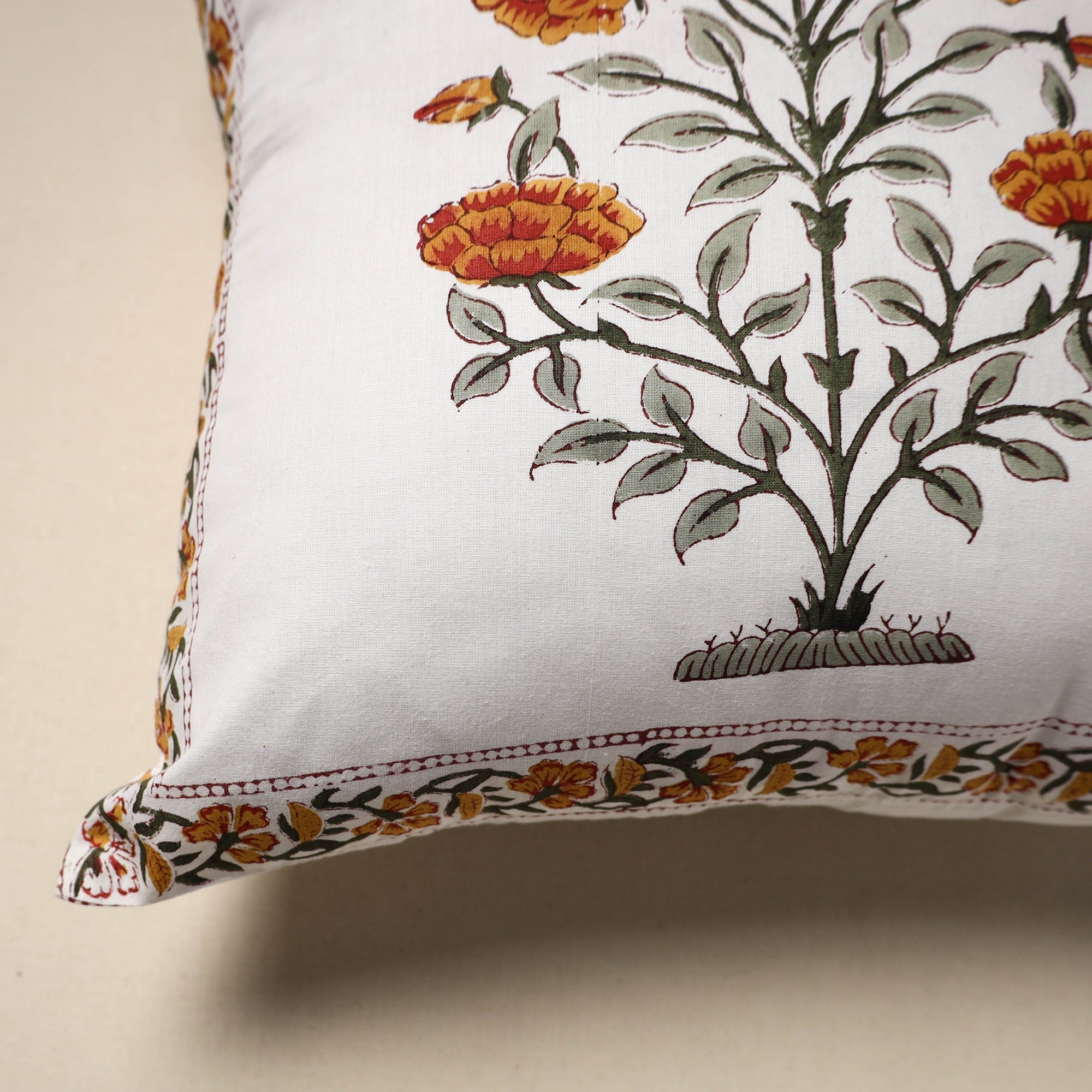 White - Block Print Cotton Sanganeri Cushion Cover (16 x 16 in) 29