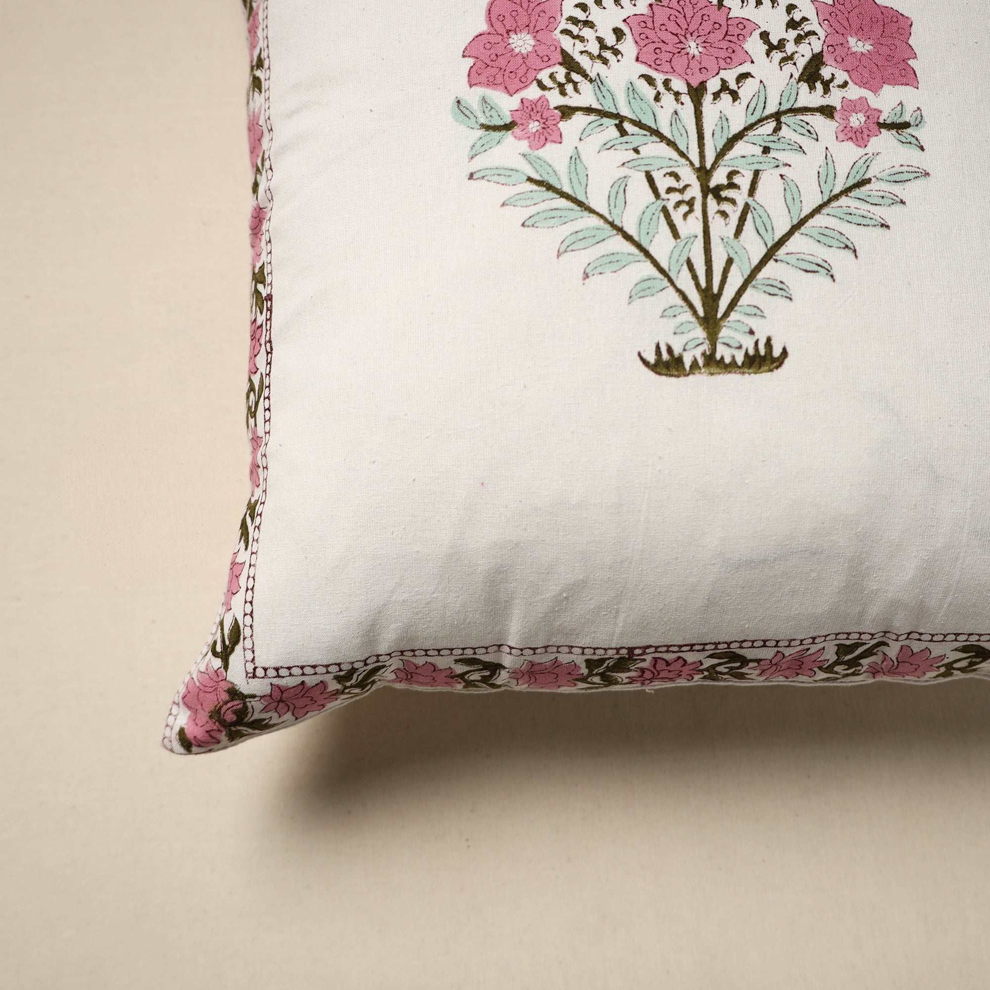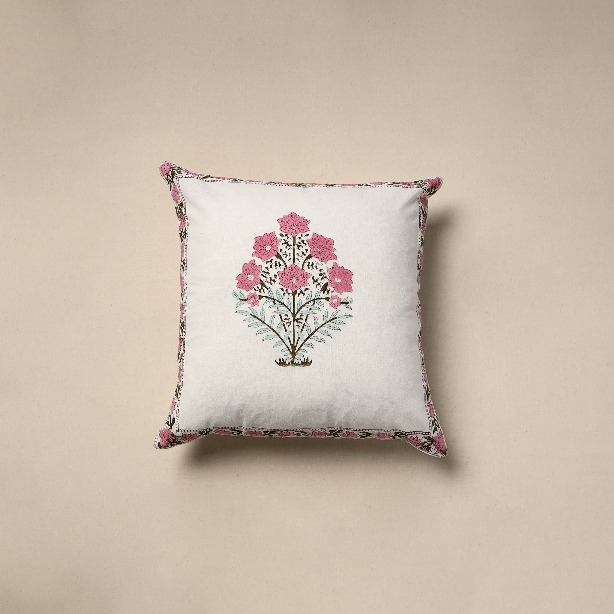 Add a touch of charm to your home with this white sanganeri block printed cotton cushion cover. Made using traditional hand block printing from Rajasthan, each piece features delicate motifs on soft cotton fabric. Perfect for sofas, chairs, or beds, it beautifully combines comfort with Indian artistry for everyday elegance.