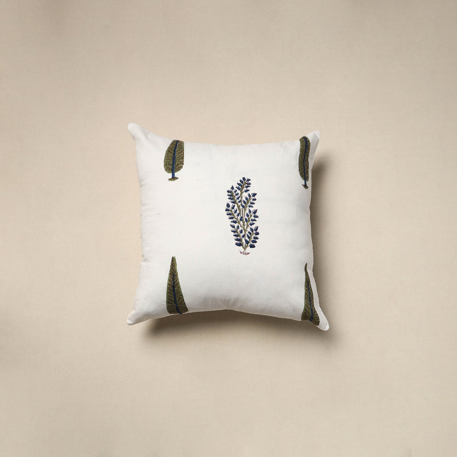 White - Block Print Cotton Sanganeri Cushion Cover (16 x 16 in) 48