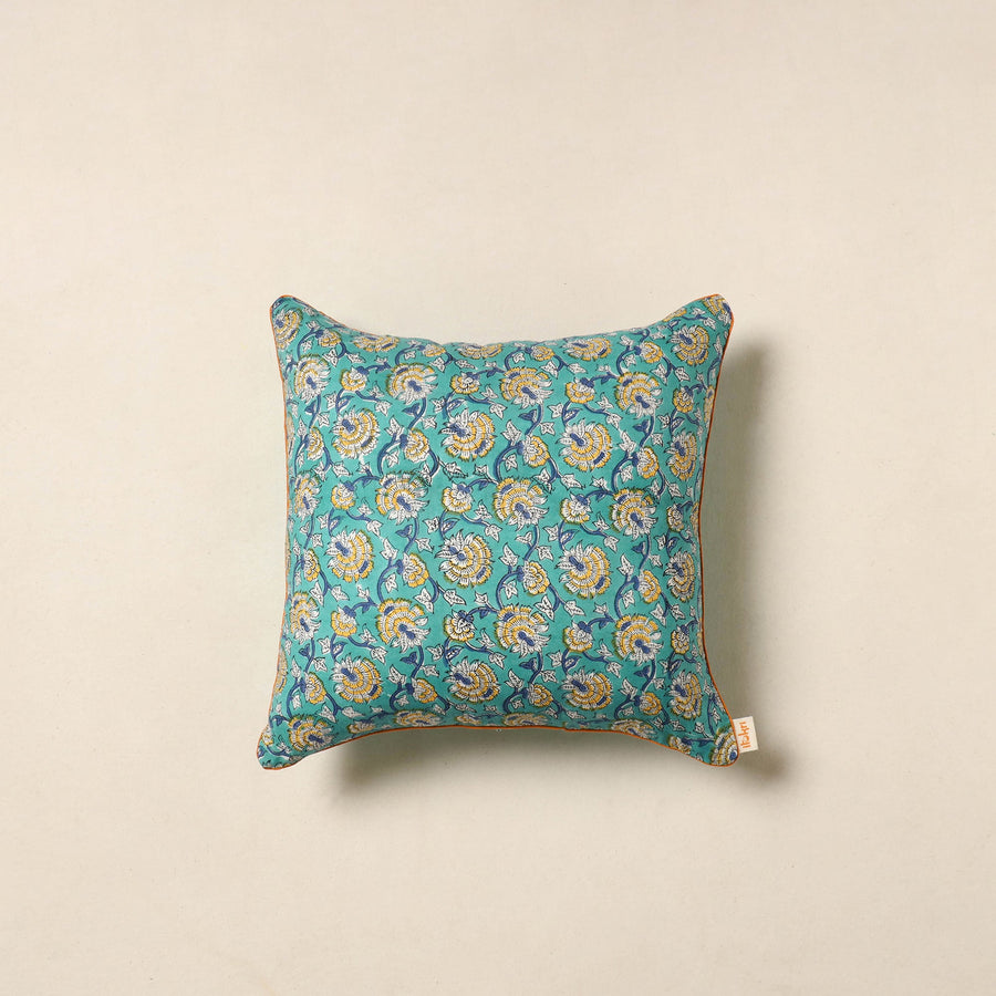 Add a touch of tradition to your space with this green sanganeri block-printed cushion cover. It captures the timeless charm of age-old artistry. Made from soft cotton, it blends comfort with cultural elegance, making it perfect for your sofa, chair, or bed.