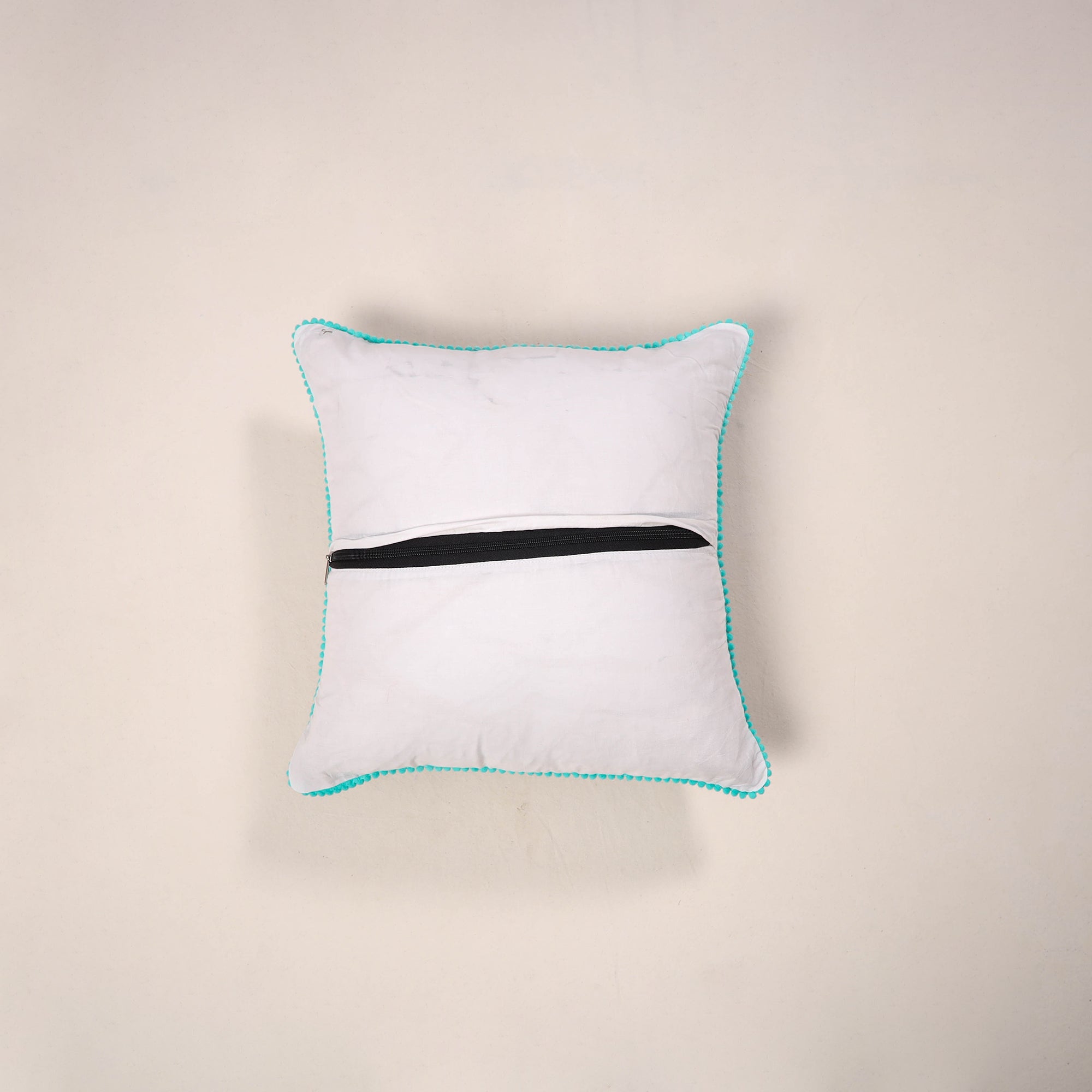 Style up your space with this beautiful green sanganeri cushion cover. Hand block printed by artisans in Rajasthan, it features delicate floral motifs and pom-pom edges. Made from soft cotton, it’s perfect for your sofa, bed or that cozy corner you love to unwind in.